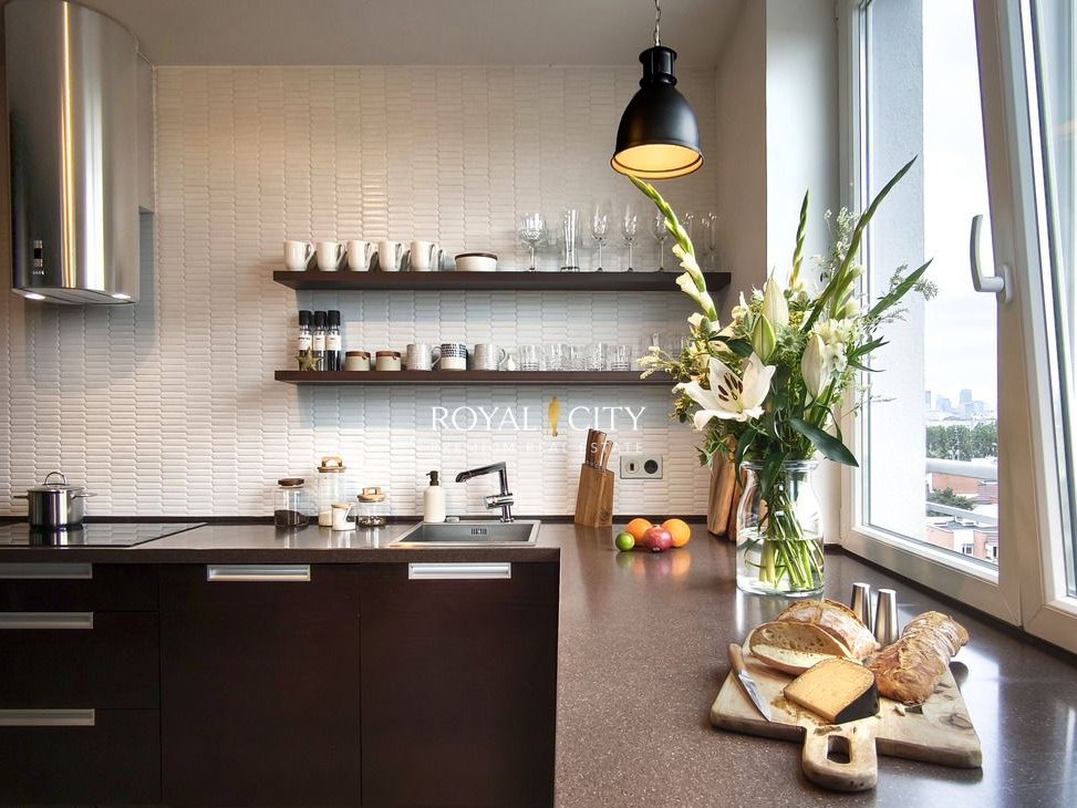 Apartament został zaprojektowany przez pracownię nobo design i wykończony materiałami najwyższej klasy oraz meblami wykonywanymi na zamówienie.