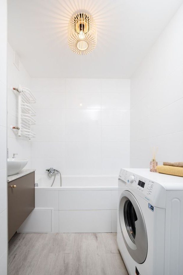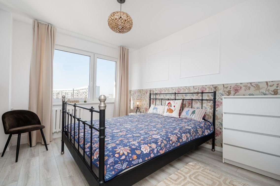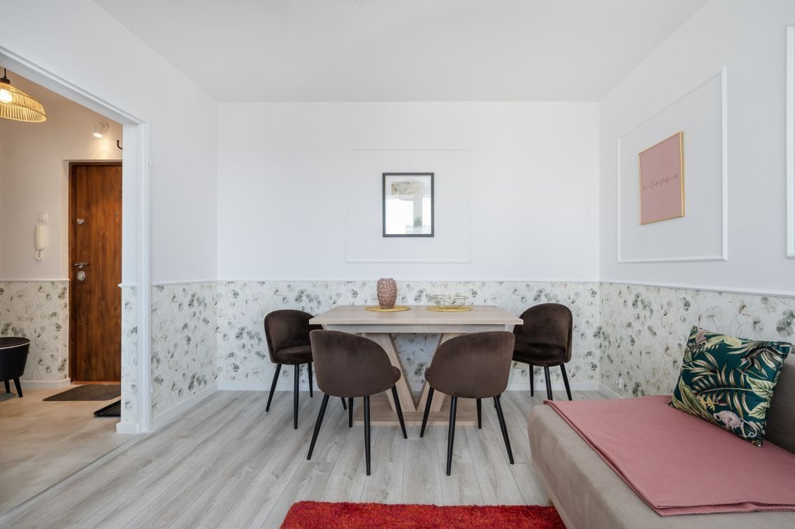 Na szczególną uwagę zasługuje nowoczesna kuchnia wyposażona w nową zabudowę meblową oraz sprzęt AGD objęty gwarancją. Wnętrza są jasne, świeże i zaprojektowane z wyczuciem — dominują neutralne kolory, eleganckie dodatki i ponadczasowe wykończenie, dzięki czemu mieszkanie spodoba się zarówno osobom szukającym własnego miejsca do życia, jak i inwestorom.