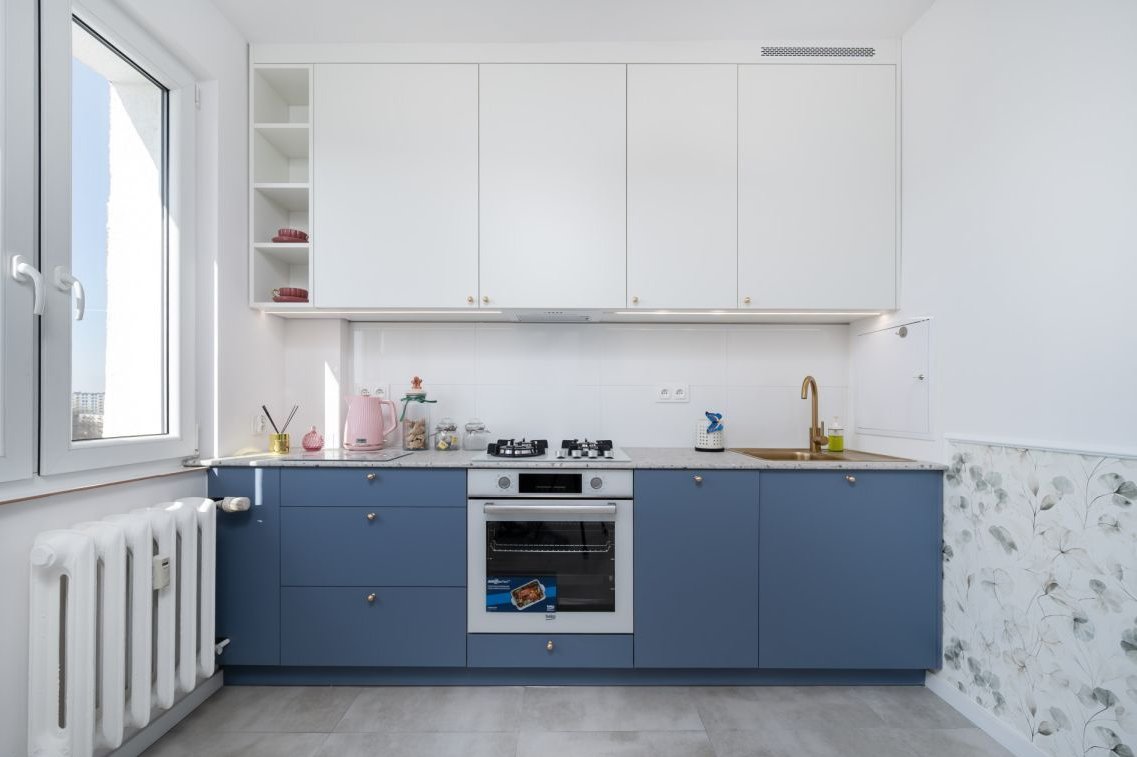 osobna, jasna kuchnia z nową zabudową,