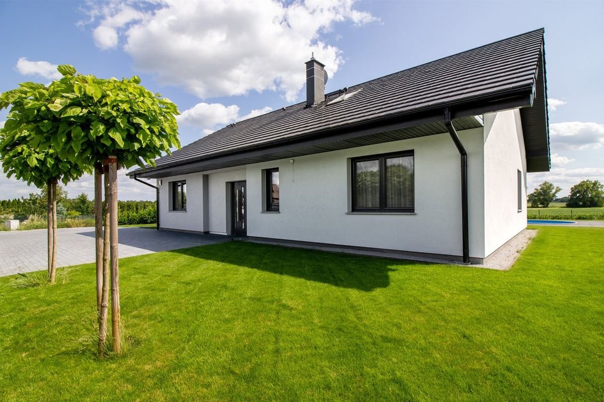 Dom został perfekcyjnie wykończony – zarówno wewnątrz, jak i na zewnątrz. Każdy metr przestrzeni został zaprojektowany z dbałością o detale, tworząc spójną, nowoczesną i gotową do zamieszkania całość.