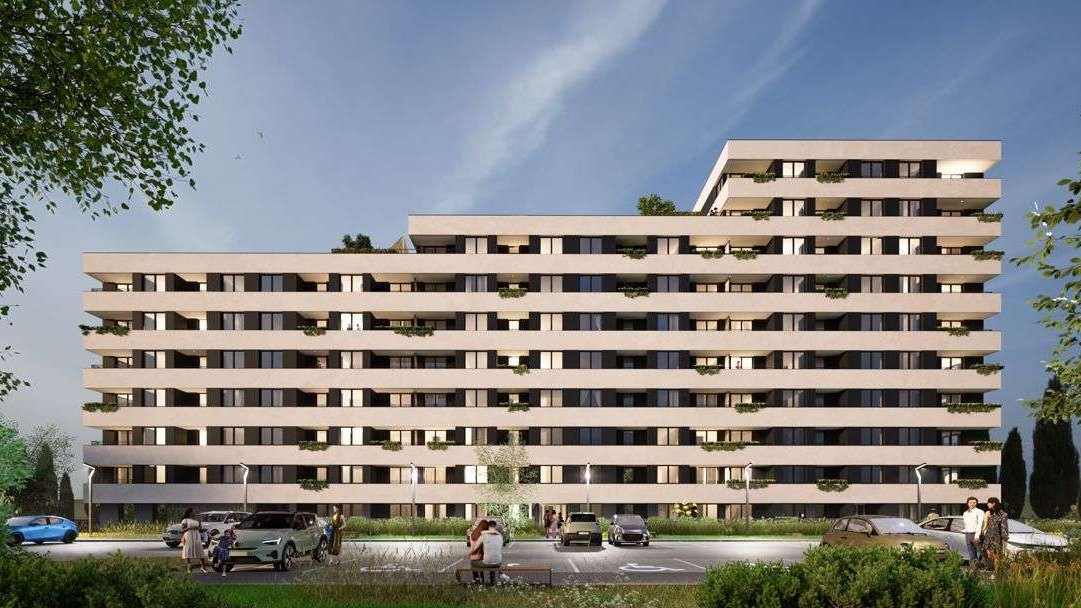 Przy tej realizacji również zaproponowaliśmy nowoczesną bryłę budynku, która wykończona zostanie w stonowanych barwach. Zadbano również o aranżację wnętrz przestrzeni wspólnych. Subtelne detale, takie jak płytki na podłogach holu i klatki schodowej w naturalnych odcieniach dopełnią wnętrza, tworząc spokojną i harmonijną przestrzeń.