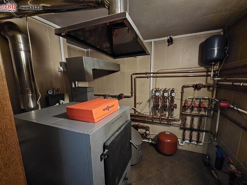 Wnętrze domu zostało zaprojektowane z dbałością o najwyższe standardy - zastosowano wysokiej jakości materiały, takie jak naturalny granit i eleganckie parkiety. Ogrzewanie zapewniają nowoczesny piec olejowy oraz piec zgazyfikujący drewno, co gwarantuje komfort cieplny przez cały rok.