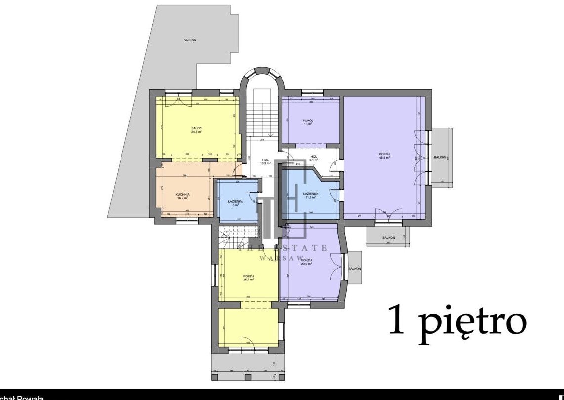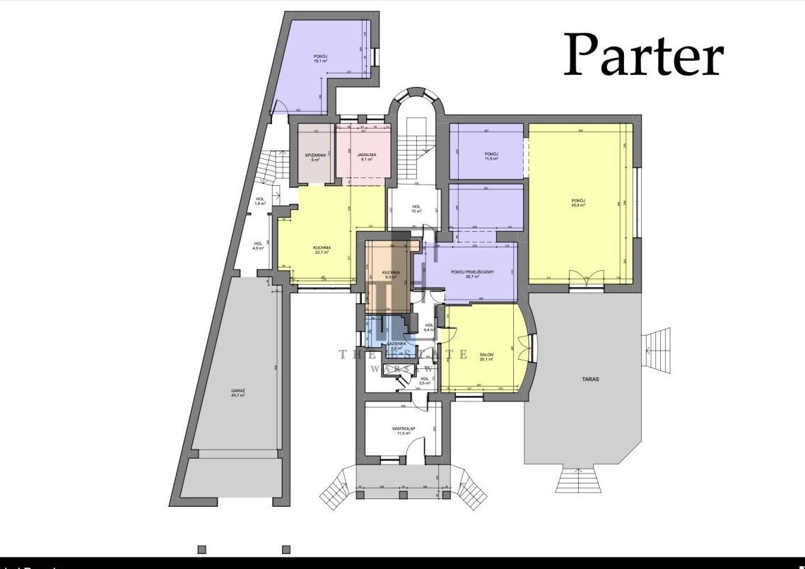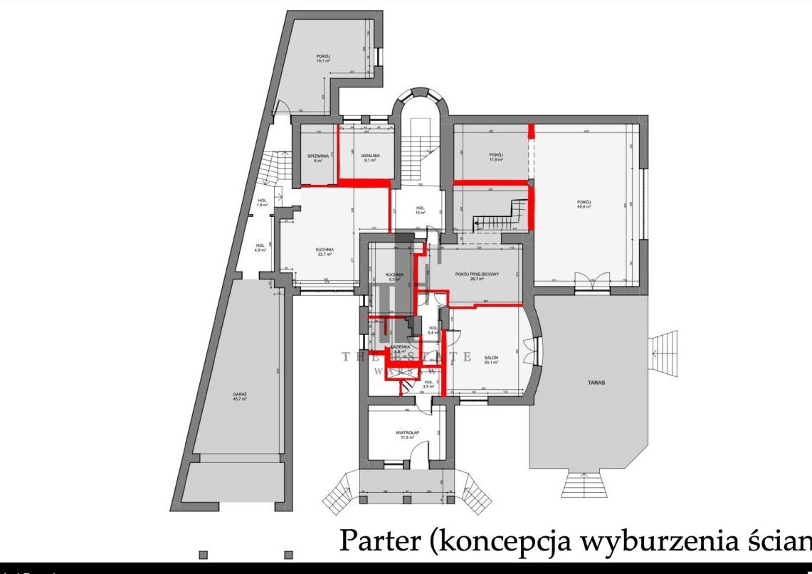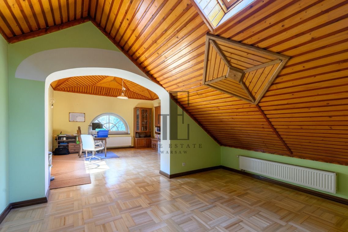 Willa o imponującej powierzchni całkowitej 651m² położona na dużej działce 2038m², oferująca przestronne wnętrza i ogromny potencjał aranżacyjny. Budynek został częściowo wykończony - w pełni gotowe jest pierwsze piętro oraz poddasze, natomiast parter i przyziemie pozostają do własnej adaptacji. Wysokie, ponad 3-metrowe pomieszczenia oraz duże okna zapewniają naturalne doświetlenie wnętrz. Budynek jest wyposażony w następujące media: wodę (własne ujęcie oraz przyłącze w drodze), prąd, gaz oraz szambo (z możliwością podłączenia do kanalizacji).