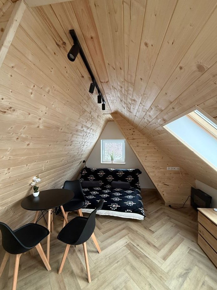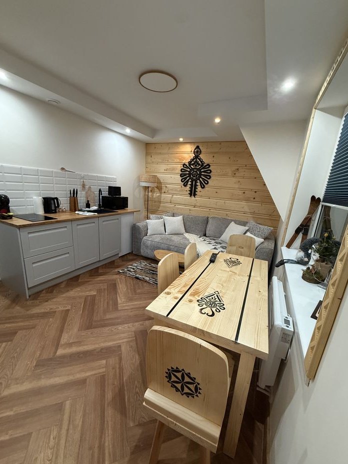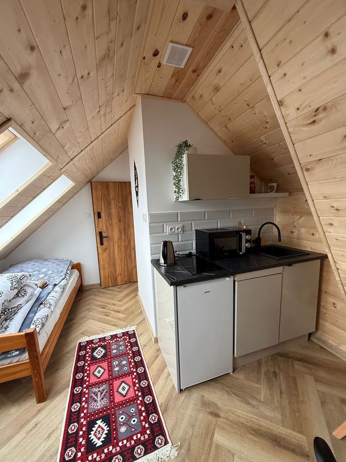 Apartament nr. 7 (Poddasze): z widokiem na Tatry, 30m2, salon z kuchnią, rozkładana sofa + łazienka z prysznicem. Cena 450tys.zł. + parking 25.000zł SPRZEDANY