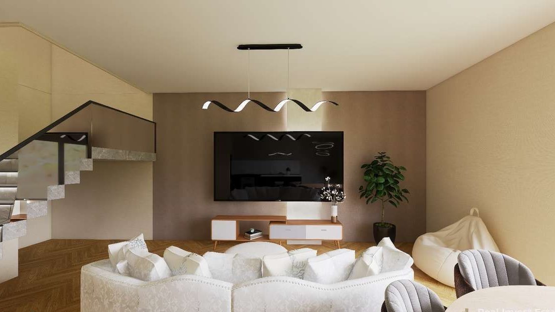 Zdjęcia i wizualizacje przedstawiają przykładową realizację.Materiał wideo prezentuje domy zrealizowane w I etapie inwestycji, położonym bezpośrednio w sąsiedztwie aktualnie realizowanego II etapu.