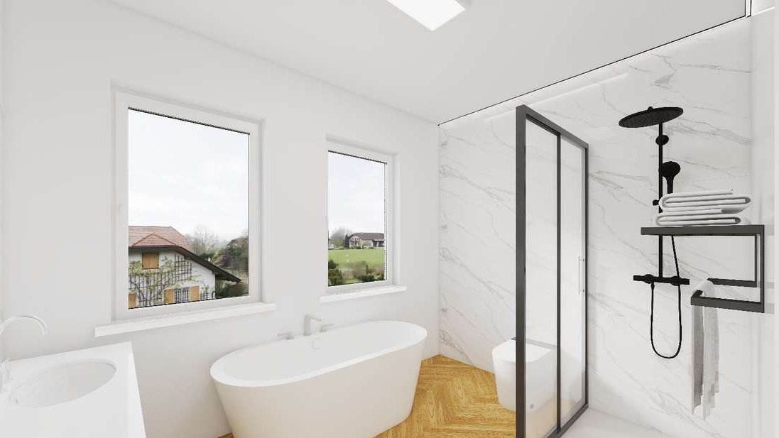łazienka z wanną i prysznicem – 9,07 m²