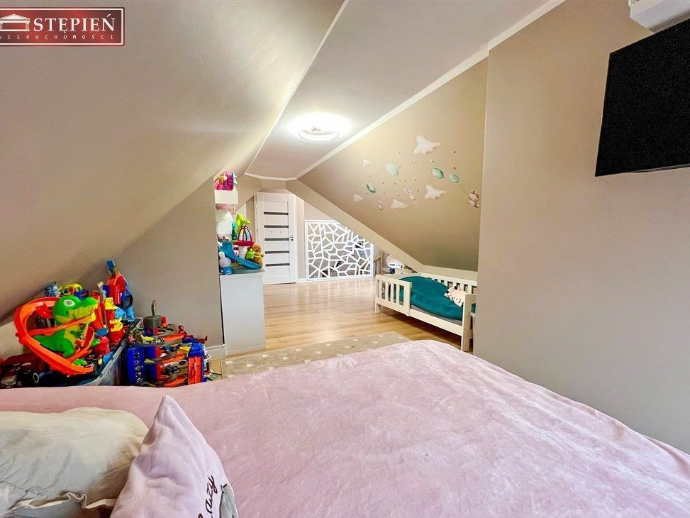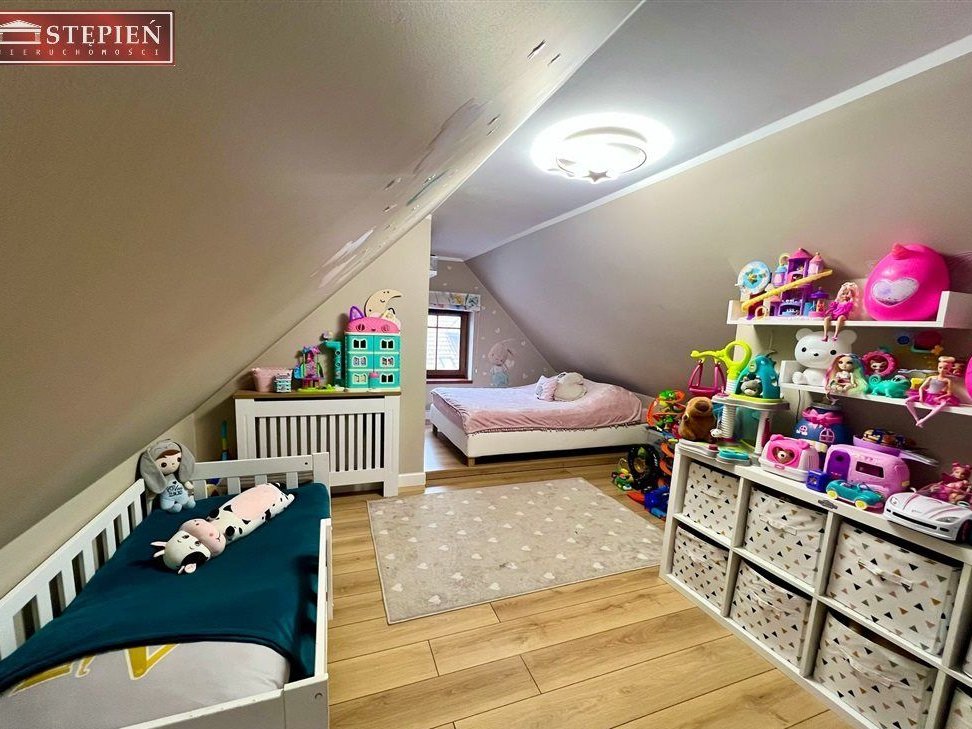 Łazienka oraz wygodna komunikacja dopełniają funkcjonalny układ tej kondygnacji.Poziom II – królestwo dzieci