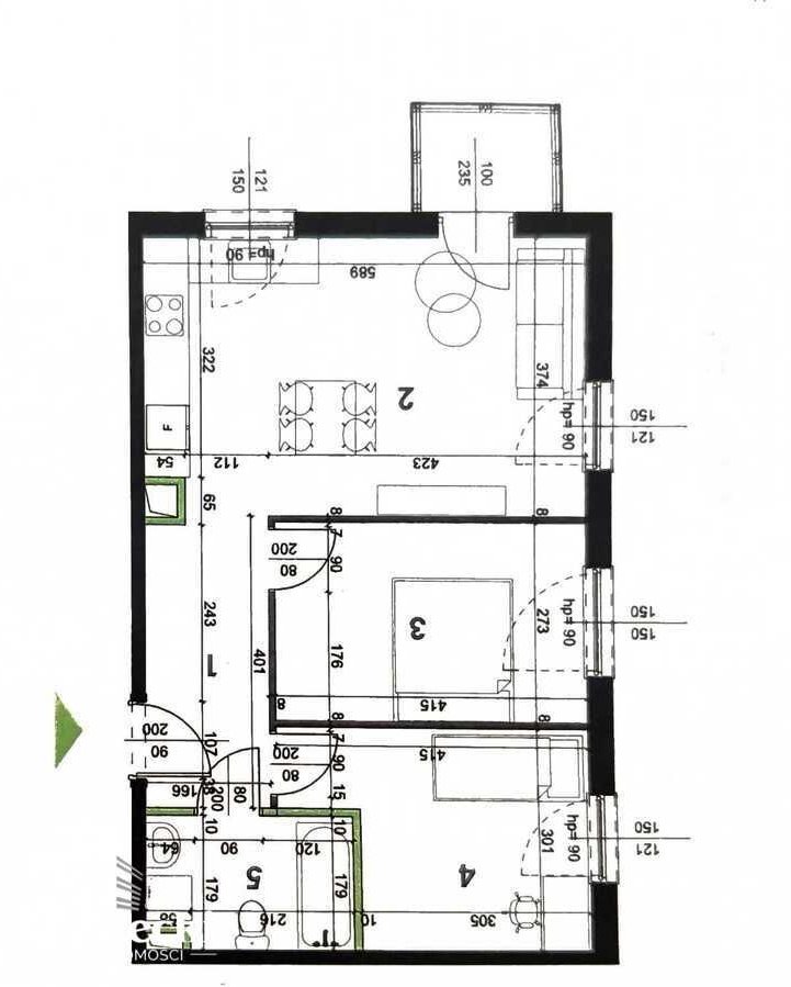 Mieszkanie składa się z dwóch sypialni oraz salonu z aneksem kuchennym, dużego przedpokoju oraz łazienki.