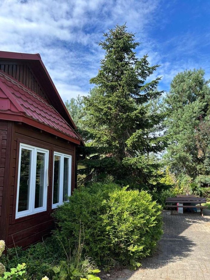 drewniany dom mieszkalny typu szwedzkiego o pow. 127m2 z garażem i tarasem (rok budowy 2005)
