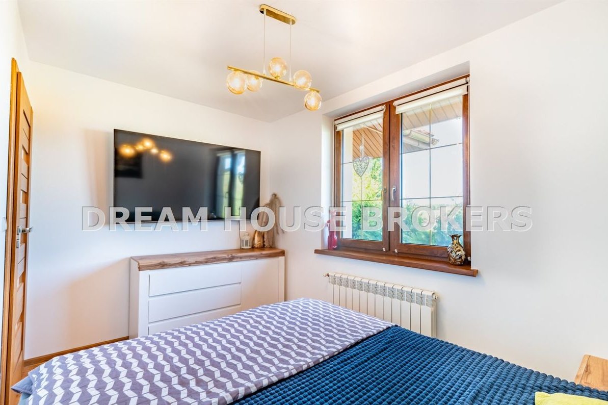 Biuro nieruchomości Dream House Brokers ma przyjemność zaoferować na sprzedaż wyjątkowy dom jednorodzinny położony w malowniczej miejscowości Kramarzówka. Nieruchomość o powierzchni całkowitej 202,9 m² (powierzchnia użytkowa 161 m2)z dodatkowo zagospodarowanym poddaszem znajduje się na przestronnej działce o powierzchni 70 arów. Dom wyróżnia się nie tylko nowoczesnym designem, ale również wysokim standardem wykończenia oraz licznymi udogodnieniami technologicznymi. Dom został wybudowany według projektu Anzio Termo, co oznacza doskonałą termoizolację oraz przemyślane rozwiązania architektoniczne, które zapewniają komfort codziennego użytkowania. Na parterze zastosowano ogrzewanie podłogowe, co gwarantuje przyjemne ciepło i niskie koszty eksploatacji. Dodatkowo, dom został wyposażony w pompę ciepła, a także instalację fotowoltaiczną o mocy 8 kW, co czyni go energooszczędnym i ekologicznym rozwiązaniem. Nowi właściciele mogą cieszyć się minimalnymi kosztami utrzymania przy jednoczesnym korzystaniu z nowoczesnych technologii. Wnętrze domu zostało starannie wykończone w wysokim standardzie. W pomieszczeniach panuje przytulna i funkcjonalna atmosfera, a zagospodarowane poddasze oferuje dodatkową przestrzeń, którą można dostosować do indywidualnych potrzeb – idealne miejsce na dodatkową sypialnię, gabinet czy strefę relaksu.