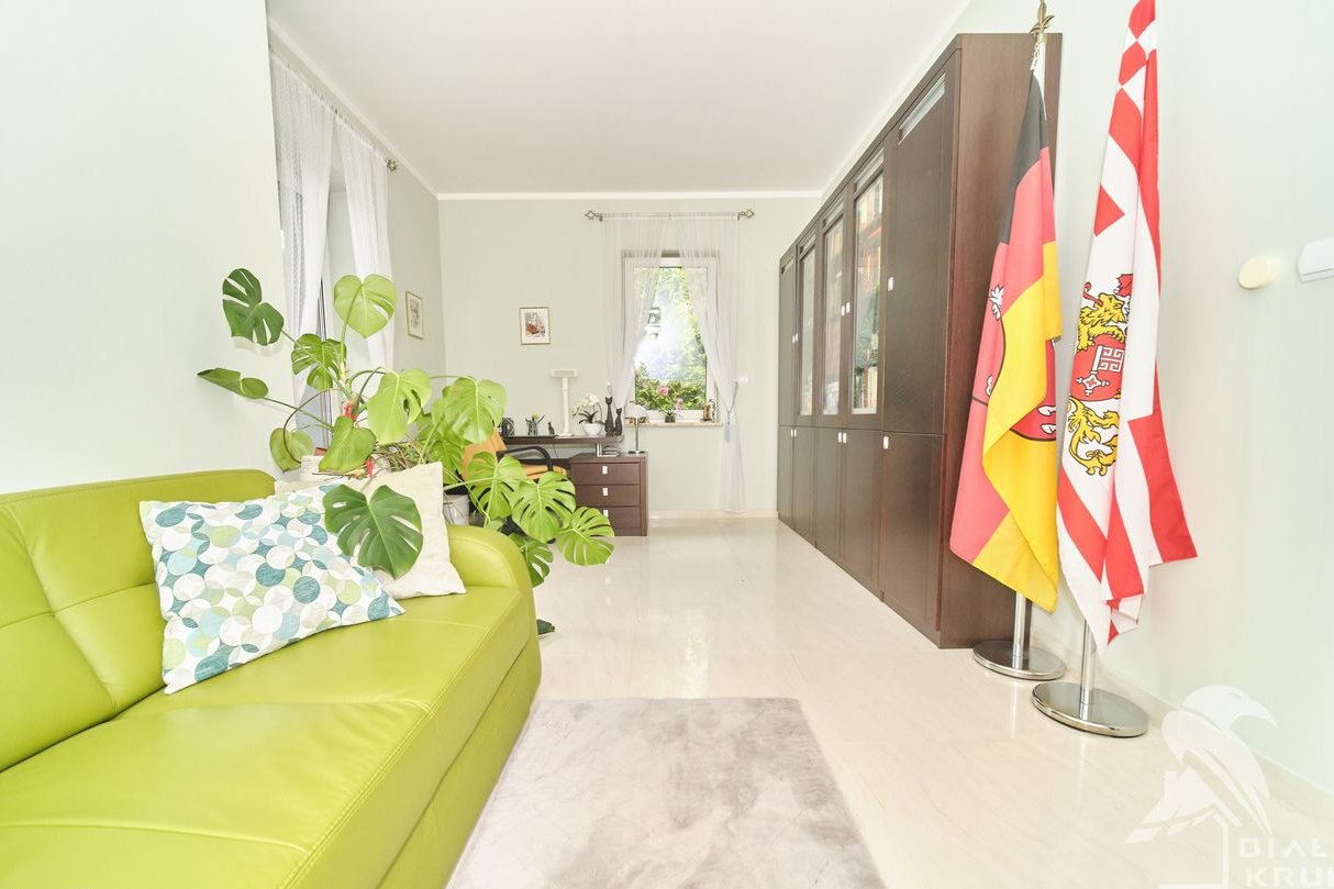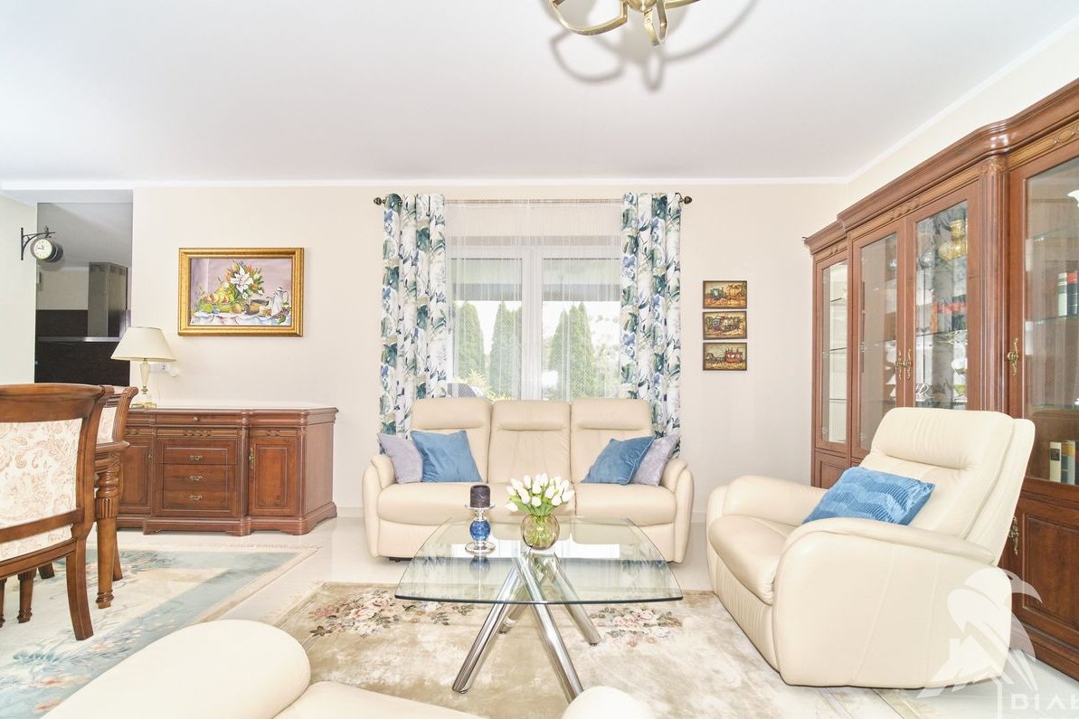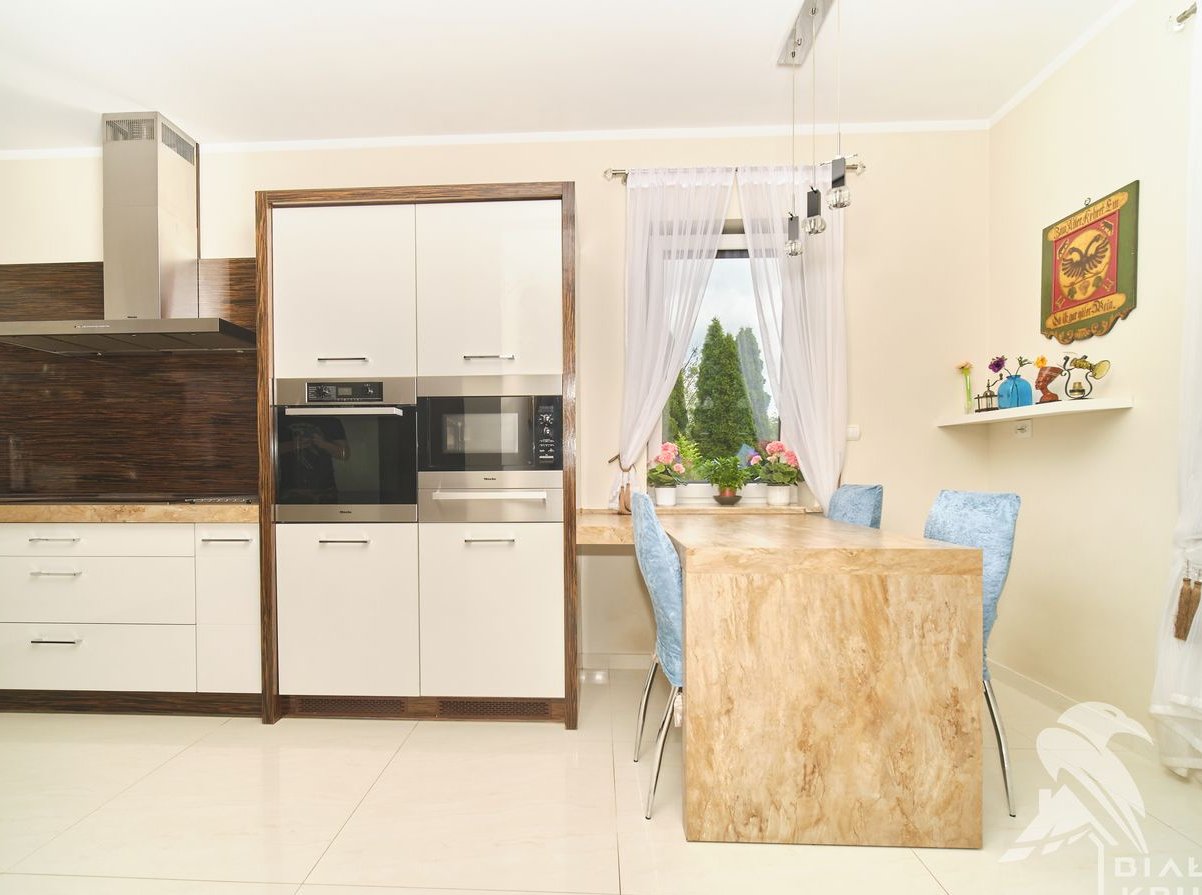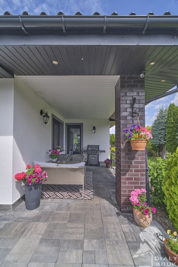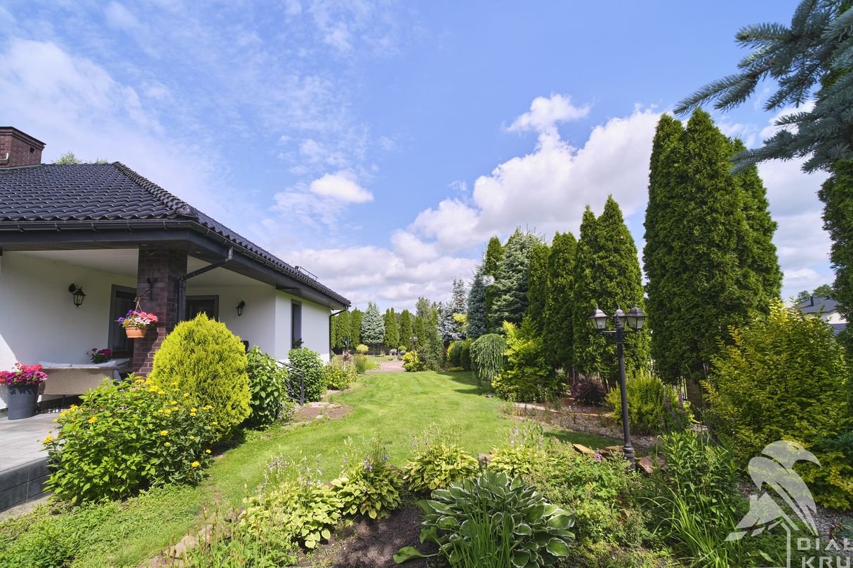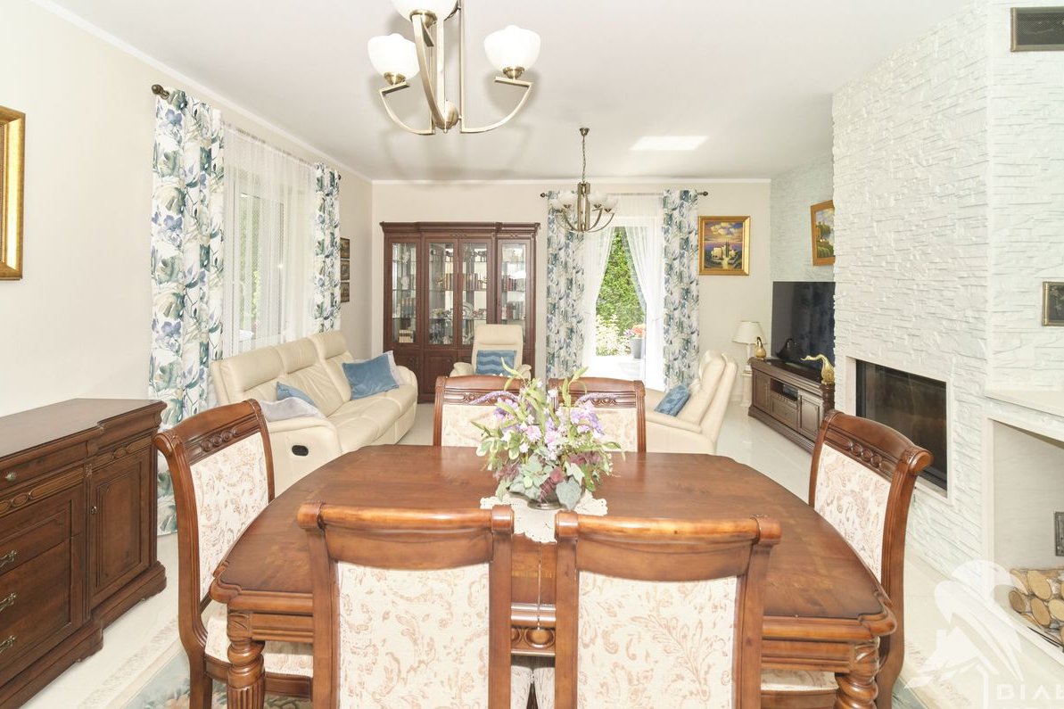 Dom ogrodzony, brama solidna - wykuta na zamówienie. Na terenie działki znajduje się drewutnia o powierzchni 35 m2, altanka, ogródek warzywny oraz wybieg dla psów. Budynek wysoce energooszczędny dzięki połączeniu pompy ciepła i fotowoltaiki - niskie koszty utrzymania dużego metrażu – w miesiącach letnich około 115 zł, a w zimowych około 1000 zł. Dom wybudowany z cegły, ocieplony wełną mineralną, okna trzyszybowe, dach pokryty angobowaną ceramiczną dachówką. Ogrzewanie podłogowe na terenie całego budynku, nawet w garażu. Z części mieszkalnej do garażu istnieje bezpośrednie przejście – nie trzeba wychodzić na zewnątrz aby dostać się do samochodów. W ogrodzie automatyczne nawadnianie całego ogrodu z własnym ujęciem wody. Nad bezpieczeństwem mieszkańców czuwa alarm oraz monitoring na 8 kamer. Sprzęty AGD marki Premium firmy Miele oraz całe umeblowanie widoczne na zdjęciach (oprócz rzeczy osobistych i sentymentalnych) zostaje w cenie na wyposażeniu. Teren przed oraz wokół nieruchomości jest całkowicie zagospodarowany, wjazd na posesję wyłożony kostką brukową. W bliskiej odległości supermarket, przystanek autobusowy. Lokalizacja bardzo atrakcyjna - idealny dojazd do Torunia, z dala od głównych dróg krajowych dzięki czemu nie tworzą się korki.