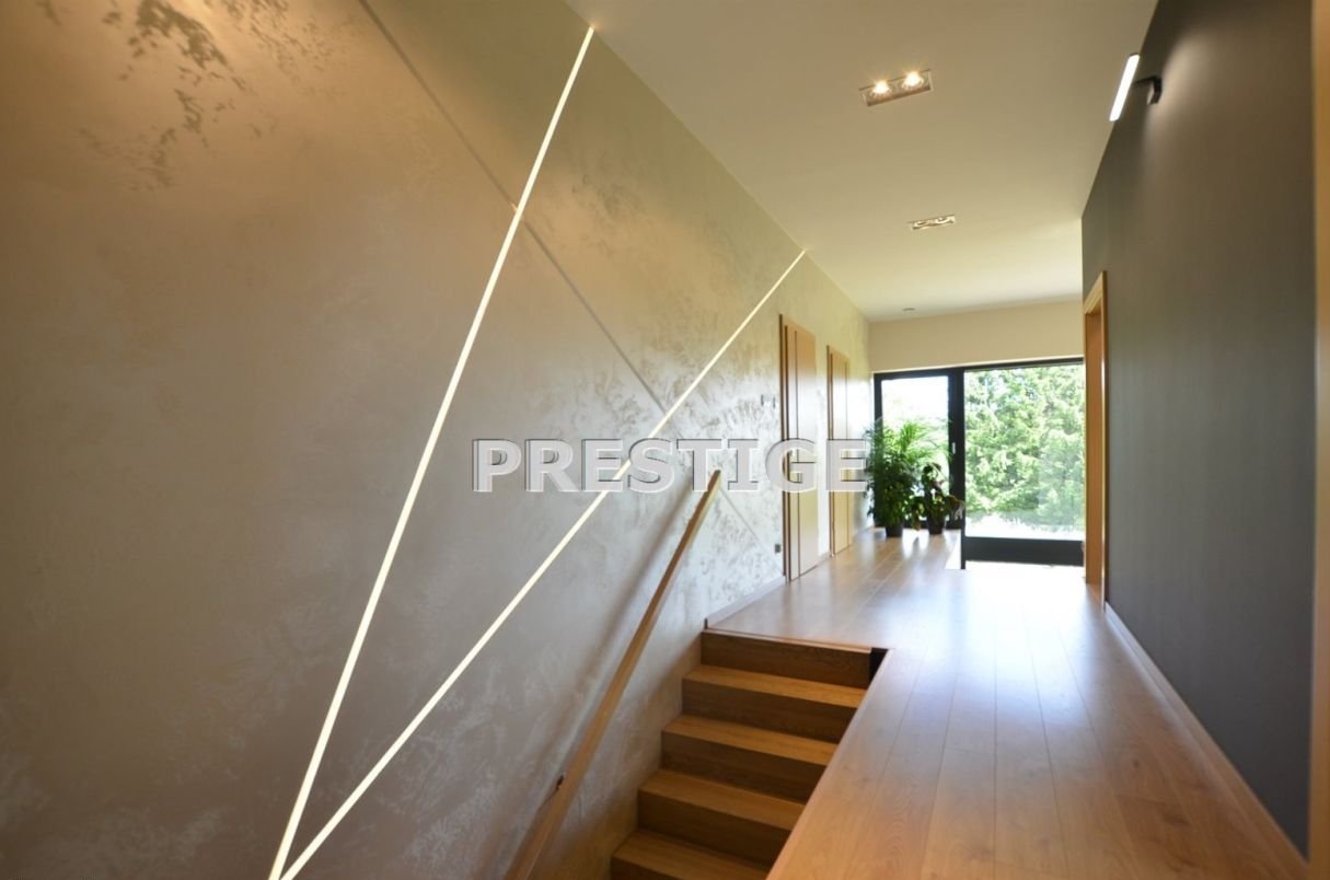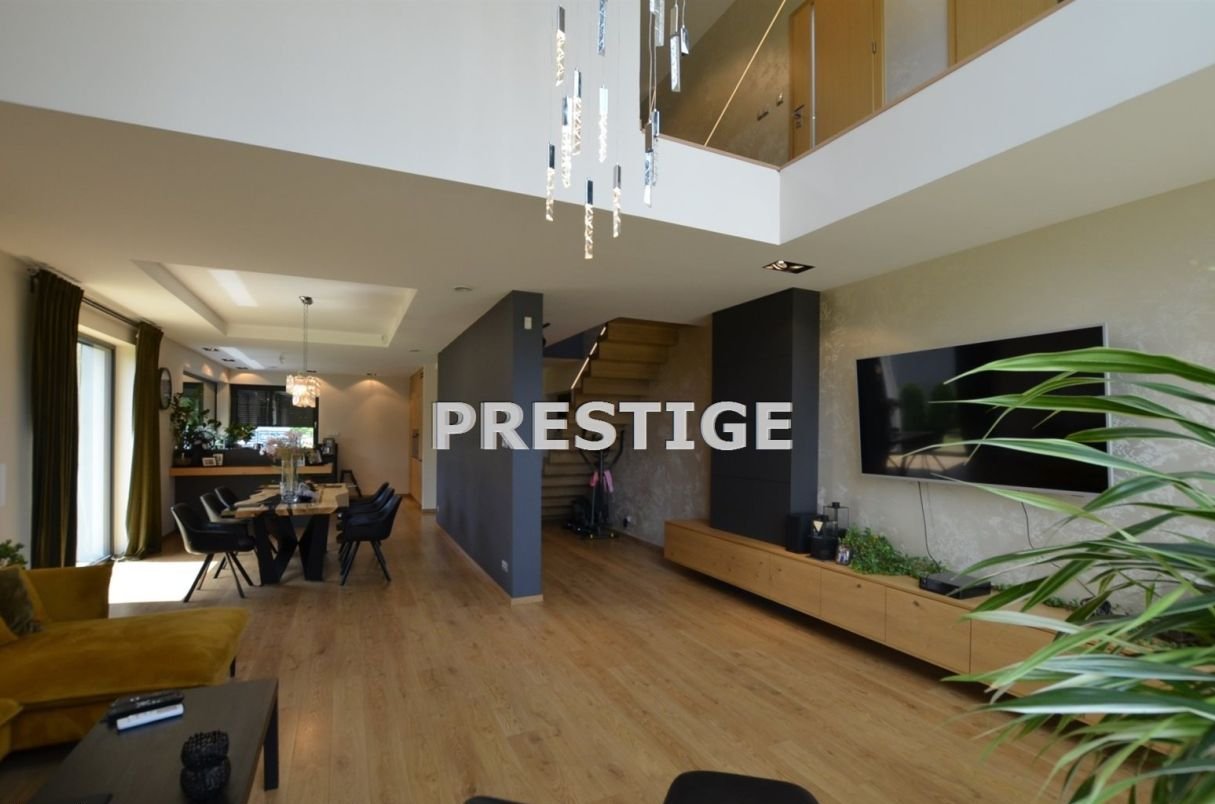 Na poziomie parteru wydzielono przestronną część dzienną stanowiącą otwartą przestrzeń: salonu, kuchni i jadalni. Salon z dużymi przeszkleniami na rekreacyjną, zieloną część ogrodu. Kuchnia zabudowana na wymiar, blaty granitowe, meble i sprzęt AGD wysokiej jakości. Jadalnia w której wygodnie pomieści się duża rodzina przy jednym stole.