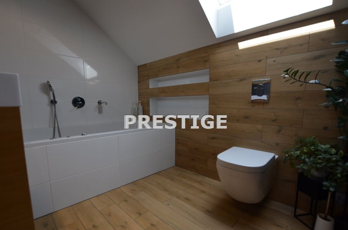 Na poddasze prowadzą piękne schody. Na tym poziomie rozmieszczono 3 sypialnię, w tym sypialnia główna z garderobą i prywatną łazienką. Dodatkowo rodzinną łazienkę i pralnię.