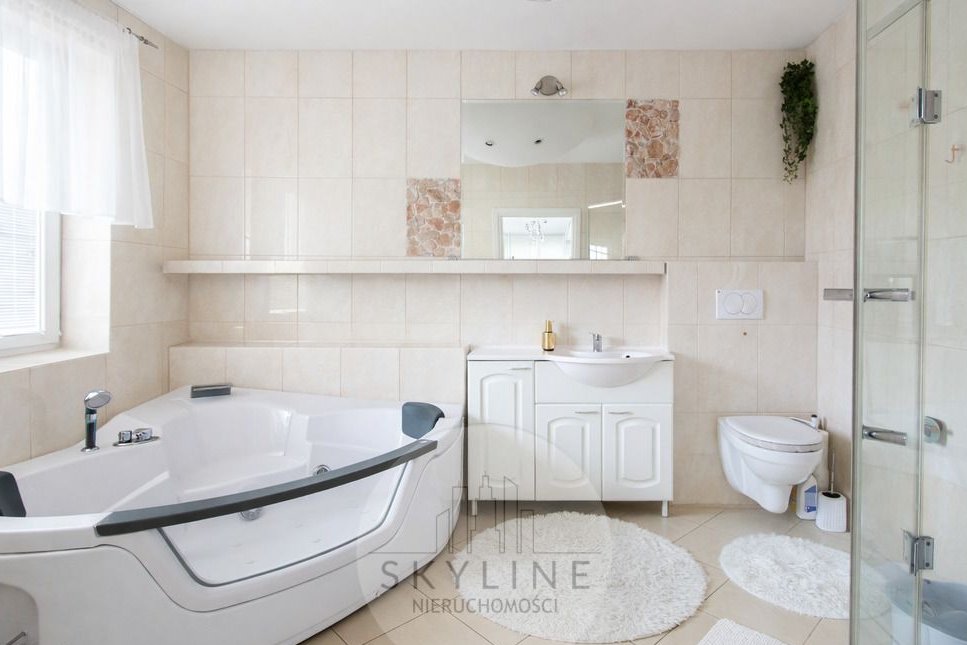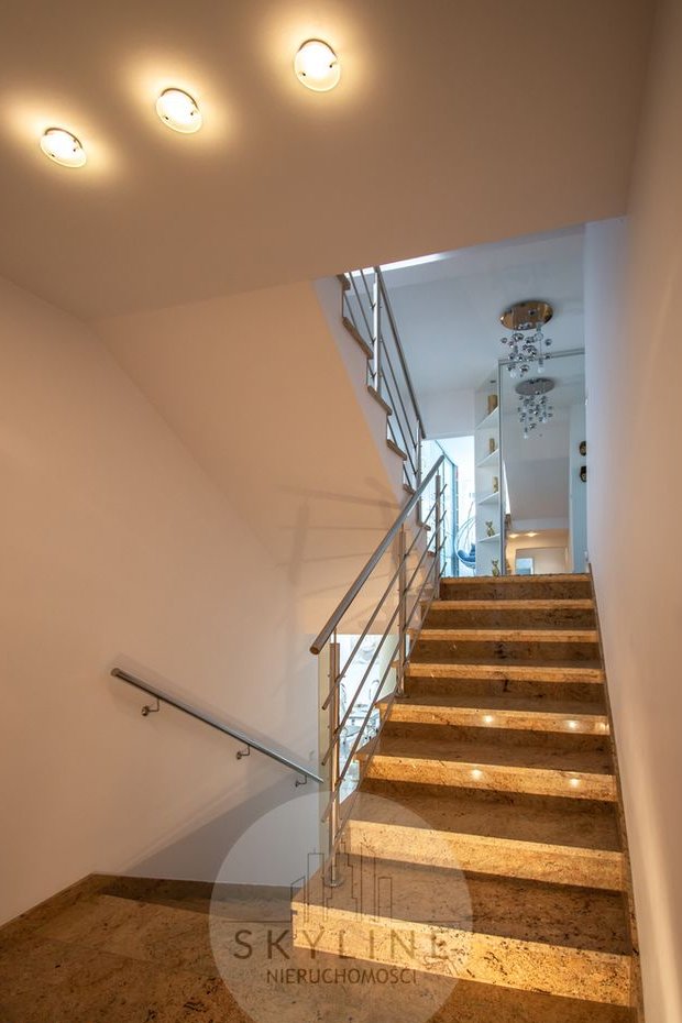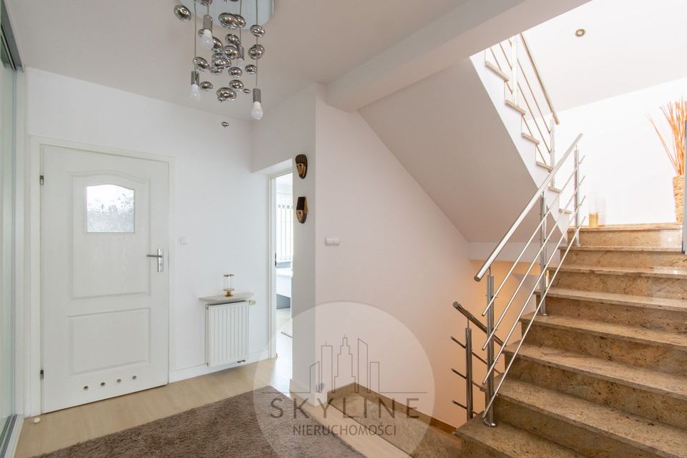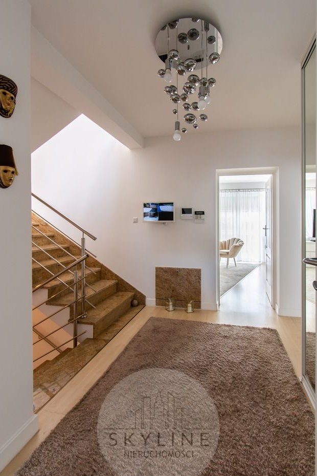 Dom został wykończony z wykorzystaniem wysokiej klasy materiałów takich jak granit i marmur, co zapewnia trwałość, ponadczasową klasę oraz komfort codziennego użytkowania. To idealna propozycja dla rodziny ceniącej nowoczesne rozwiązania, przestrzeń i spokojne otoczenie.