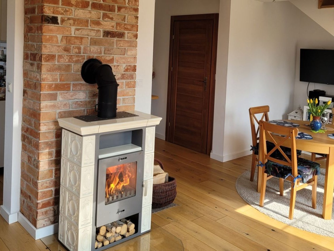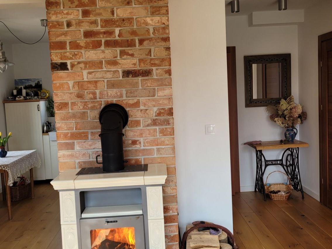 Dom posiada centralne ogrzewanie (piec na drewno , połączony z bojlerem z funkcją grzania elektrycznego). Dodatkowo w salonie znajduje się piec kominkowy.