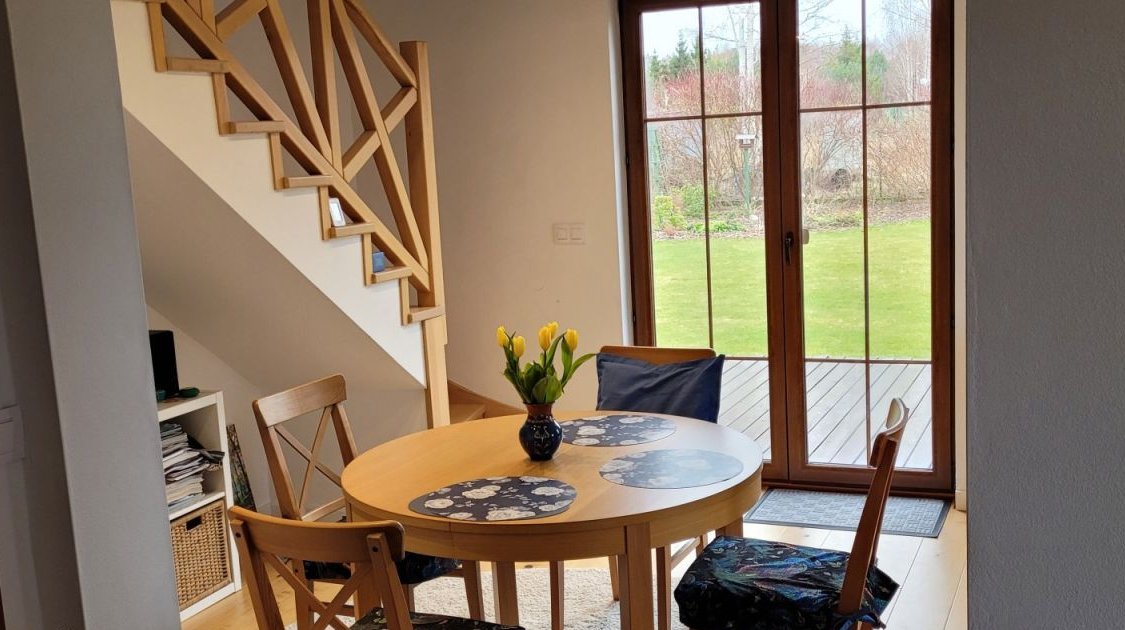 Na działce znajduje się także duży domek gospodarczy służący jako skład na drewno, rowery i sprzęty ogrodowe. Drugi, mały domek, stylizowany na szwedzki to wymarzone miejsce zabaw dla dzieci.