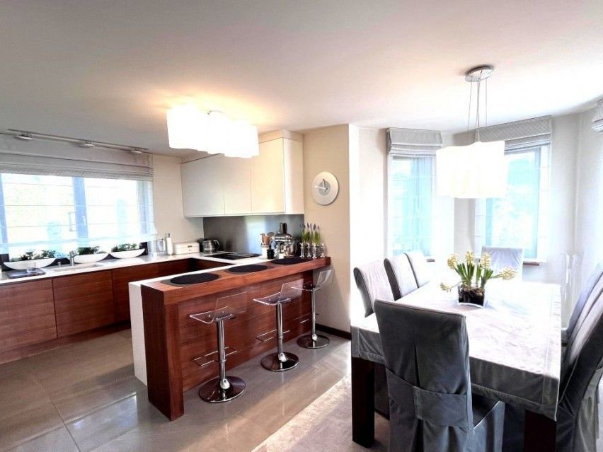 Otwarta, nowoczesna kuchnia zachwyca swoim wyglądem, ale także zapewnia funkcjonalność i komfort. Harmonijnie łączy się z przestronną częścią jadalnianą.