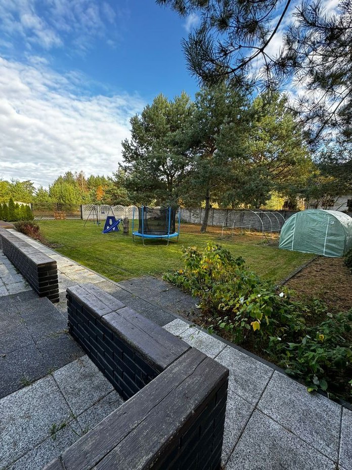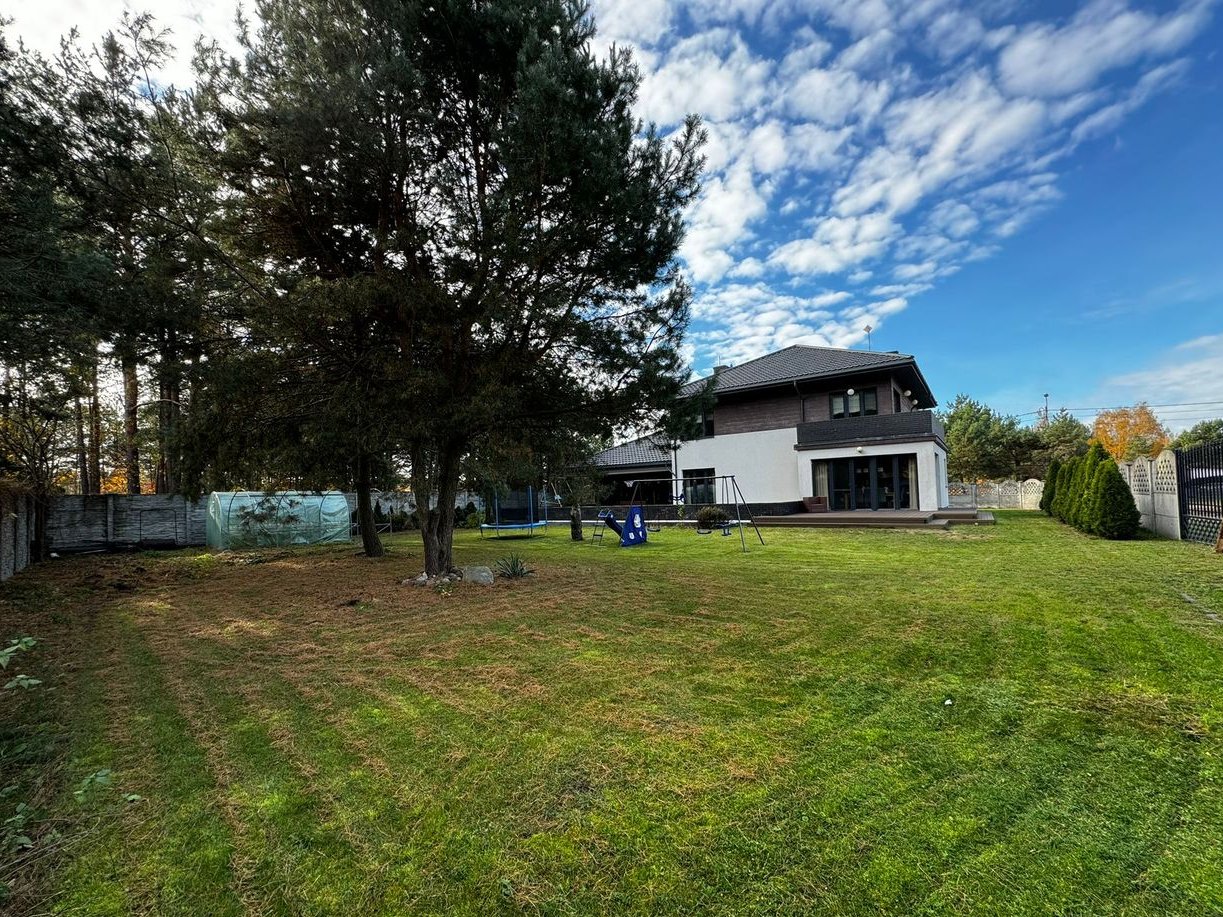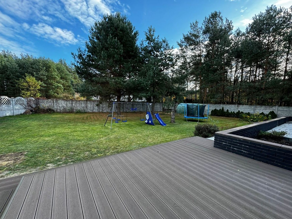 Dom położony jest na działce 1212m2 z dużym ogrodem i ogrodzeniem betonowym.