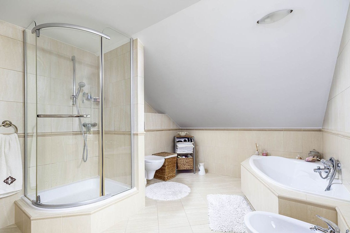 duża łazienka z wanną i prysznicem