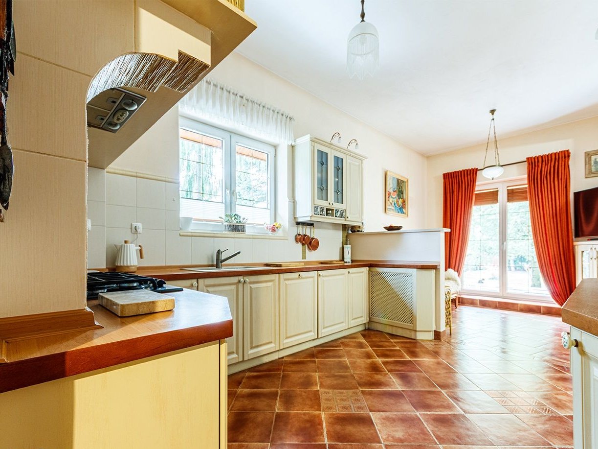 Dom usytuowany jest w spokojnej, podmiejskiej lokalizacji. W okolicy znajdziesz las i jezioro, idealne na spacery. W pobliżu znajdują się sklepy i restauracje, takie jak "Yacht Club" oraz "U Ani", a także sławny hotel Warszawianka. Komunikacja jest dobrze rozwinięta, z przystankami autobusowymi w niedalekiej odległości.