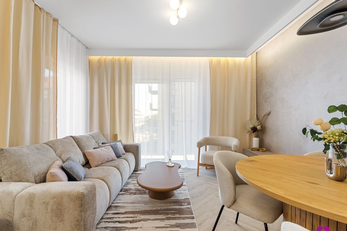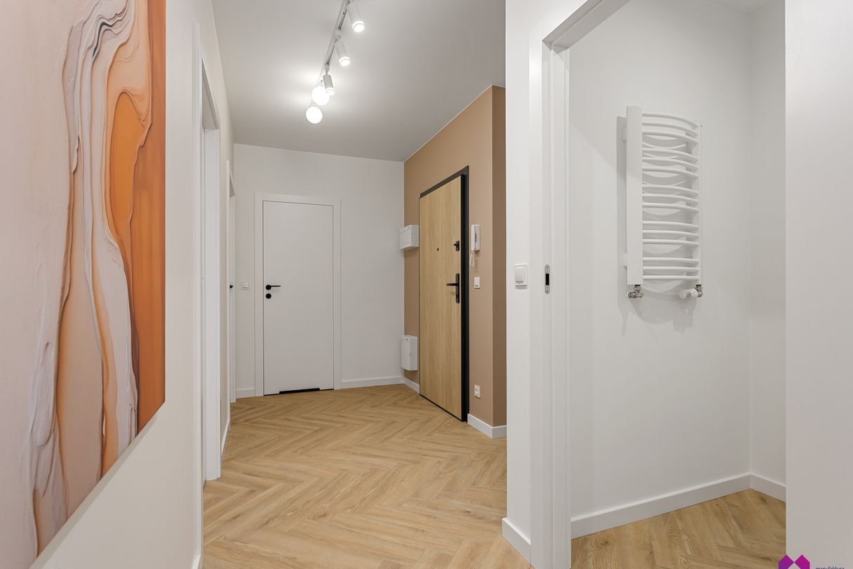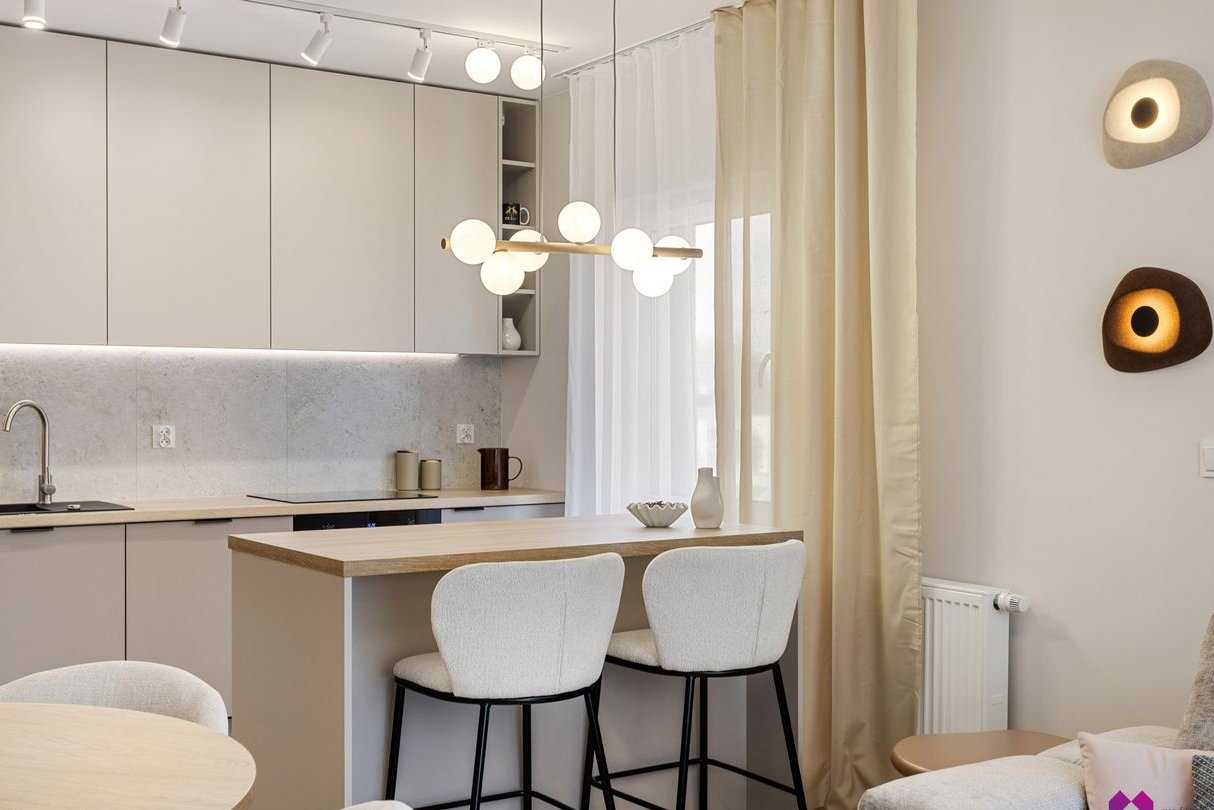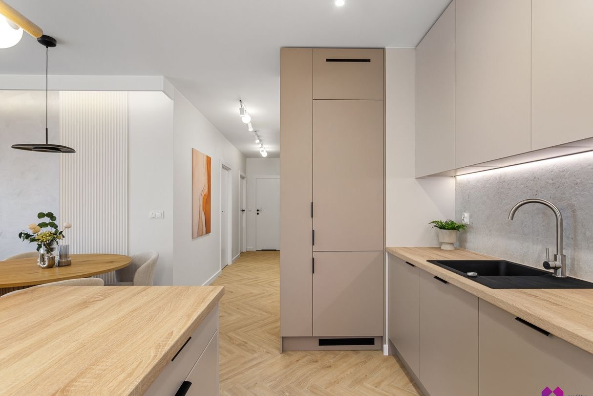 Mieszkanie wykończone pod klucz stylu nowoczesnym. Przestrzeń została zaaranżowana w lekkich, naturalnych barwach, przełamanych subtelnymi detalami. Eleganckie i przytulne dodatki podkreślają klimat wnętrza.