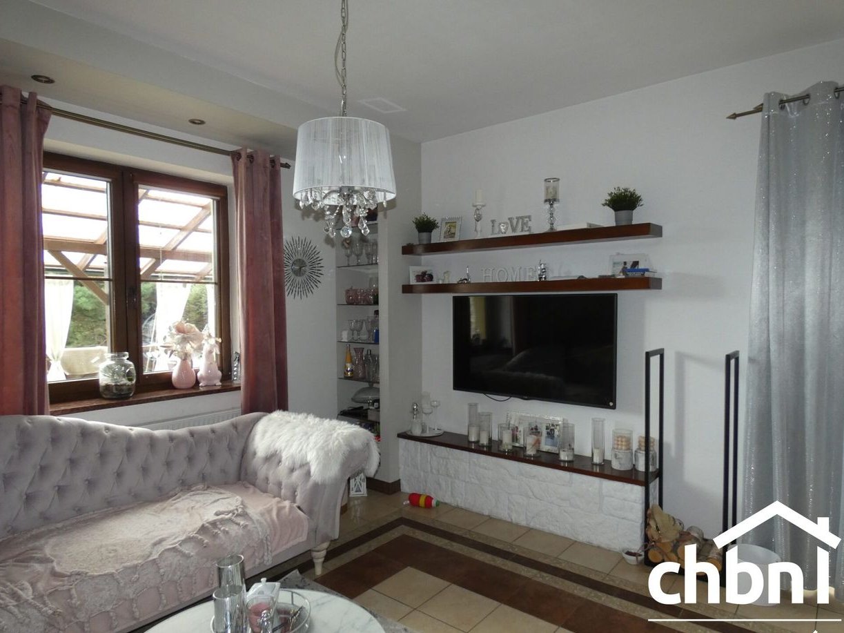 Dom o wysokim standardzie, całkowicie wykończony wewnątrz jak i na zewnątrz. W pokojach na ścianach gładzie, na podłogach panele. W kuchni oraz łazienkach stylowa glazura i terakota. Wszystkie okna PCV z zamontowanymi roletami. Blat kuchenny oraz wszystkie parapety marmurowe. Dach pokryty dachówką ceramiczną. Budynek bardzo energooszczędny, podwójne ocieplenie ścian.