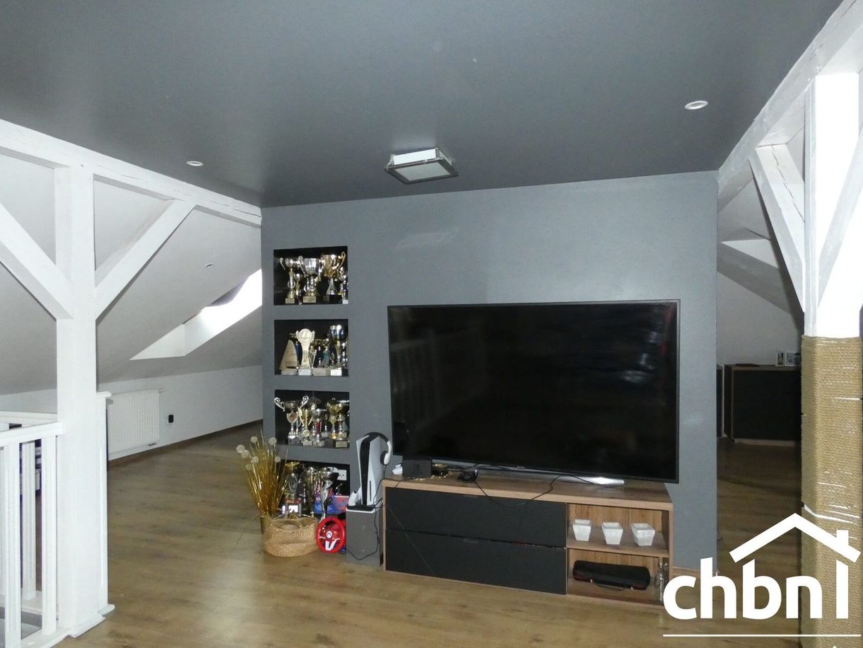 Poddasze: przestronny, jasny salon pełniący funkcję kina domowego (7 okien dachowych Velux), wydzielona część sypialniana, stylowa łazienka z prysznicem, przydatna garderoba, pomieszczenie przeznaczone na pralnie oraz korytarz.
