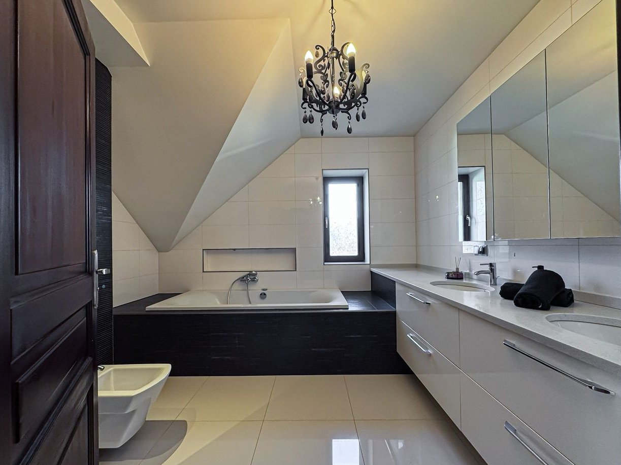 Do sprzedania wyjątkowy, przestronny dom w Woli Batorskiej. Gotowy do wejścia, w pełni wyposażony, na zagospodarowanej działce. Na parterze znajduje się duży salon połączony z kuchnią i jadalnią, z bezpośrednim wyjściem na taras, spiżarnia, pralnia, łazienka z prysznicem, pokój, przestronny hall i garaż (w bryle budynku). Na piętrze łazienka z wanną, sypiania połączona z garderobą oraz 3 osobne pokoje. Dodatkowo strych stanowiący idealne miejsce do przechowywania. Powierzchnia użytkowa: 178,52 m2, powierzchnia całkowita: 221,90 m2. Dom został wykończony z dbałością o detale- w kuchni oraz łazience blaty z naturalnego kamienia, kominek z rozprowadzeniem ciepła, w salonie dębowy parkiet, dużo szaf w zabudowie, odkurzacz centralny. Taras jest zadaszony. Okna trzyszybowe, instalacja fotowoltaiczna założona w lutym 2022 roku. Na podwórku znajduje się wiata, wędzarnia oraz domek narzędziowy. Brama wjazdowa oraz garażowa sterowane automatycznie. Dom jest gotowy do wprowadzenia się, cena zawiera widoczne na zdjęciach meble oraz sprzęty AGD. Zapraszam do zobaczenia domu na żywo, robi jeszcze lepsze wrażenie niż na zdjęciach, jest bardzo słoneczny i przytulny. Cena: 1 690 000zł. Kupujący nie płaci prowizji. Informacja dla biur nieruchomości: współpraca możliwa jedynie w przypadku posiadania konkretnego klienta, nie wyrażam zgody na promowanie oferty.