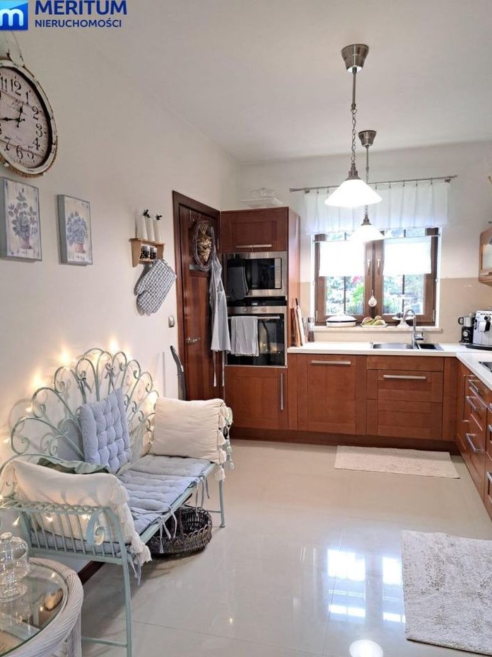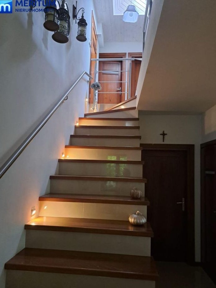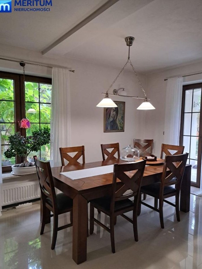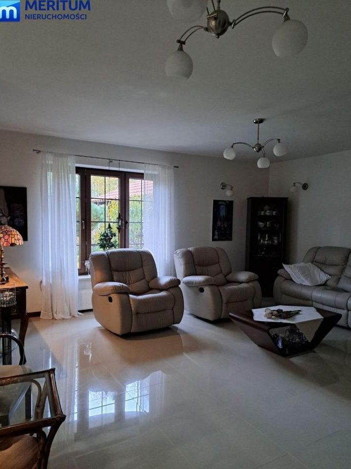 Dom usytuowany jest wśród dorodnych drzew, co zapewnia prywatność, ciszę oraz niepowtarzalny klimat przez cały rok.