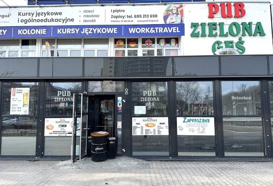 Pod blokiem pizzeria, stołówka i Zielona Gęś.