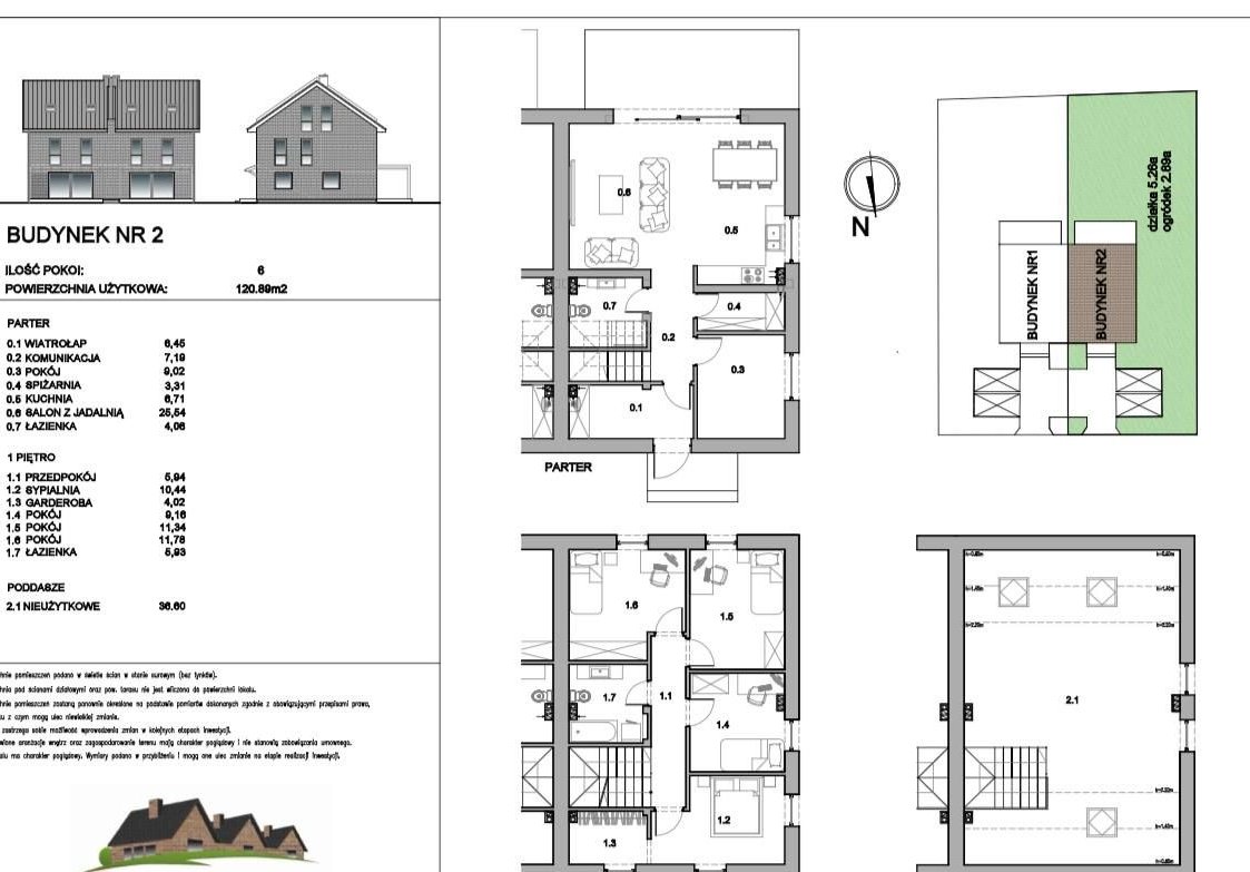 Projekt: parter + piętro + poddasze nieużytkowe