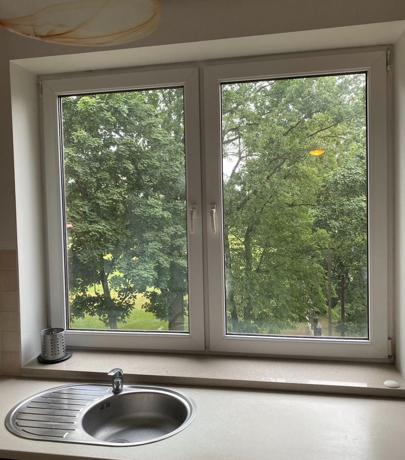 Okna z widokiem na zieleń z kuchni i salonu. i raczej tak juz zostanie bo dzialka/budynek siaduje z seminarium. Ale dzwonow nie sluchac bo budynki maja kilkaset metrow dalej (idealne rozwiazanie)