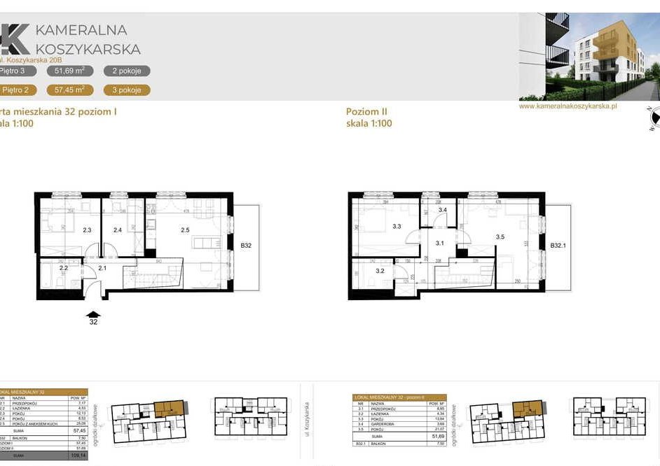 Powierzchnia: 109,14 m2 (w tym poziom II: 51,69 m2),
