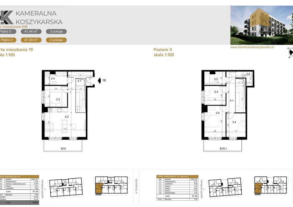 Powierzchnia: 88,83 m2 (w tym poziom II: 41,44 m2) + balkon 7,5 m2