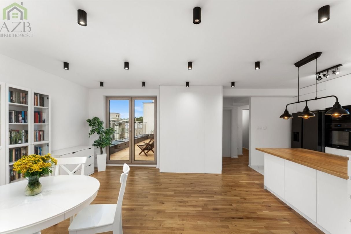 Apartament znajduje się na 3 ostatnim piętrze budynku bez windy , jest trójstronny ( wschód , południe , zachód ) i ma 83 m2 a powierzchnia dodatkowa to dwa tarasy : pierwszy na poziomie mieszkania około 20 m2 oraz drugi na dachu około 60 m2 . Mieszkanie zostało zaprojektowane dla siebie , dlatego posiada dużo przemyślanych rozwiązań i zostało wykończone w wysokim standardzie . Składa się z dużego salonu połączonego z kuchnią oraz wyjściem na taras , głównej sypialni z duża ilością szaf w zabudowie , 2 osobnych pokoi dziecięcych/gabinetów , przestronnej łazienki z oknem , przedpokoju z miejscem na szafę oraz dużej garderoby.