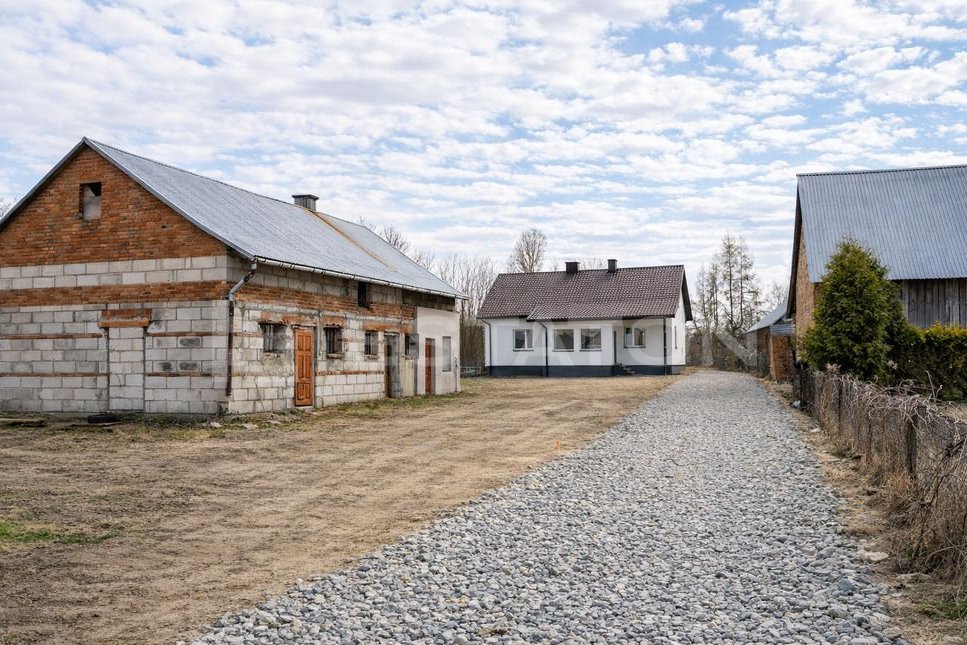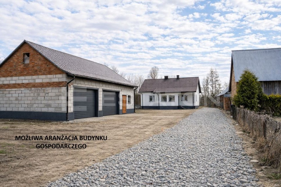 Na posesji znajduje się także solidny, murowany budynek gospodarczy o powierzchni około 100 m², składający się z trzech niezależnych stanowisk. Obiekt posiada doprowadzoną wodę oraz prąd, co czyni go idealnym miejscem na warsztat, garaż lub działalność gospodarczą.