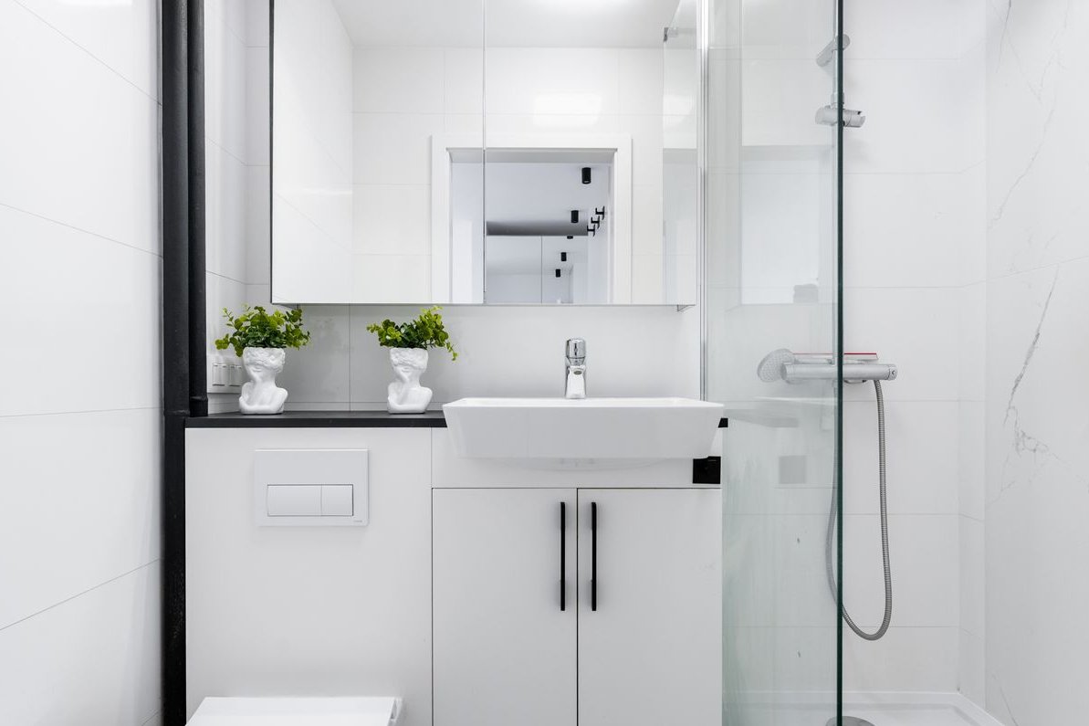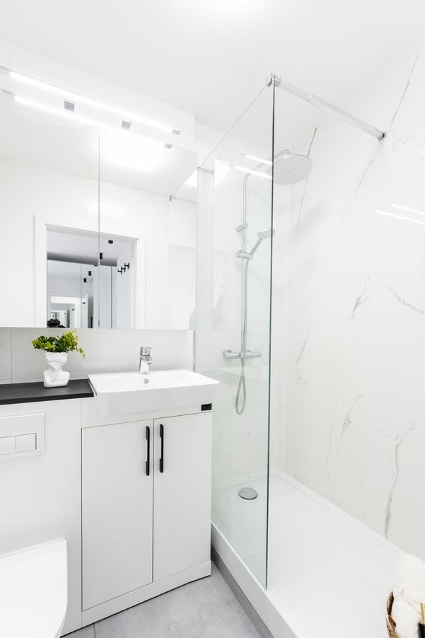• łazienka z prysznicem w nowoczesnym stylu