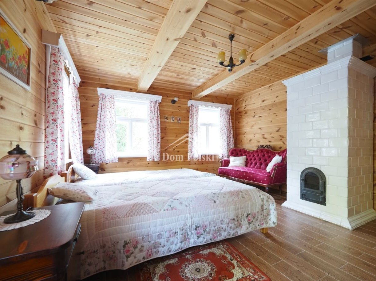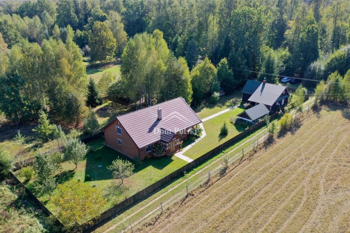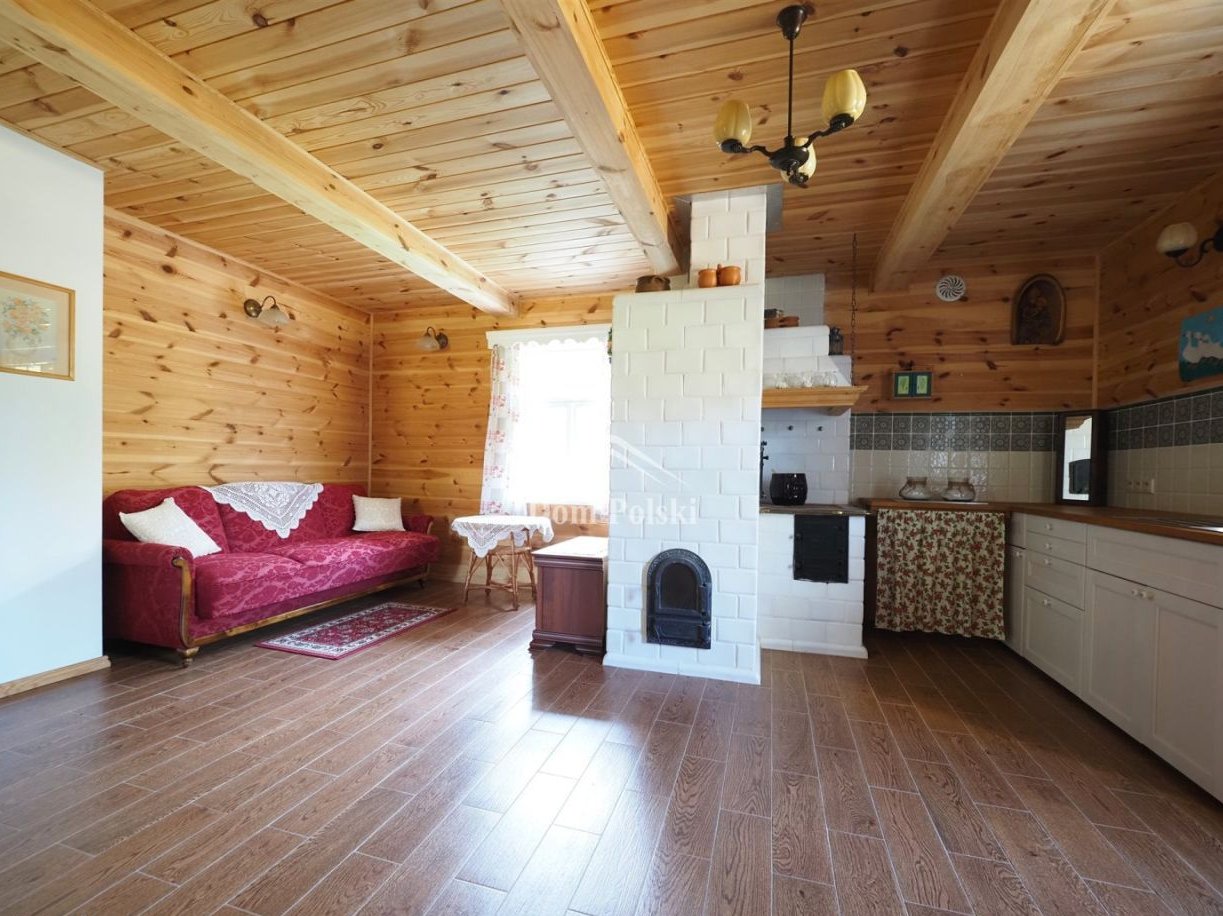 Drewniany dom gościnny o powierzchni użytkowej 55 m2 został wybudowany w 1947 roku z drewnianych bali, a następnie w roku 2014 przeszedł generalny remont. Dach dwuspadowy, ocieplony pokryty blachodachówką, wszystkie okna drewniane na wzór okien oryginalnych. Budynek składa się z salonu z aneksem kuchennym (28 m2), sypialni (20 m2), przedpokoju (3 m2) oraz łazienki (4 m2). Środek domu gustownie wykończony. Na podłogach terakota drewnopodobna, ściany oraz sufity wyłożone deską. W aneksie znajduje się oryginalna kuchnia kaflowa. W salonie i sypialni znajdują się bardzo ładne i stylowe piece kaflowe na drewno. Jasna łazienka wyłożona jest glazurą i terakotą. Wymienione zostały instalacje elektryczne oraz hydrauliczne. Przed domem znajduje się budynek gospodarczy - piwnica ziemna.