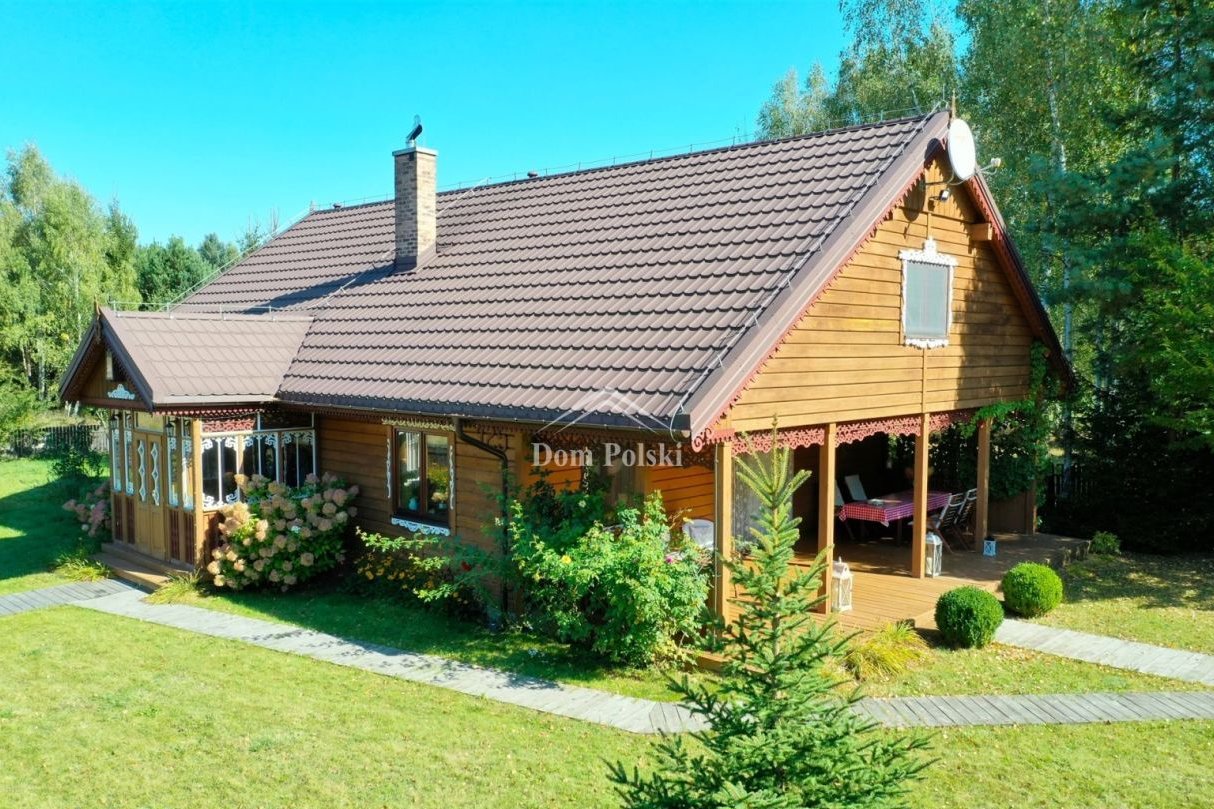 Drewniany, rustykalny dom jednorodzinny o powierzchni użytkowej 180 m2 został wybudowany w technologii szkieletowej (dom kanadyjski) w 2012 roku. Jest zdobiony na wzór podlaski. Dach dwuspadowy, podwójnie ocieplony, pokryty jest blachodachówką. Wszystkie okna są drewniane, firmy Budwar. Budynek składa się z parteru oraz poddasza użytkowego. Wejście do budynku prowadzi poprzez zamykany ganek wykończony w stylu regionalnym.