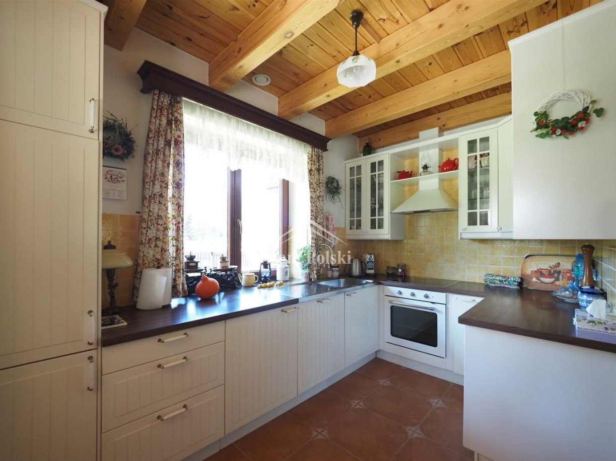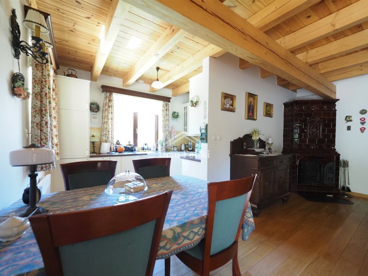 Do domu przylega duży zadaszony taras o powierzchni 40 m2. Głównym źródłem ogrzewania jest wspomniany piec kaflowy, bardzo oszczędny w zużyciu drewna. W razie potrzeby można użyć ogrzewania wspomagającego w postaci grzejników elektrycznych zainstalowanych we wszystkich pomieszczeniach i sterowanych centralnym sterownikiem. Nowe instalacje elektryczne i hydrauliczne.