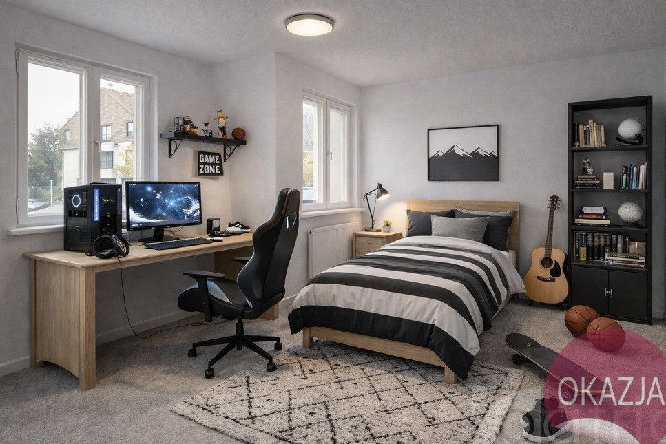 Największym atutem nieruchomości jest rozległa działka o powierzchni 1350 m² – rzadko spotykana w tej części Pogodna. Jej regularny kształt oraz sposób posadowienia budynku otwierają szerokie możliwości zagospodarowania: od rozbudowy istniejącego domu, przez budowę dodatkowego obiektu, aż po ewentualny podział działki.