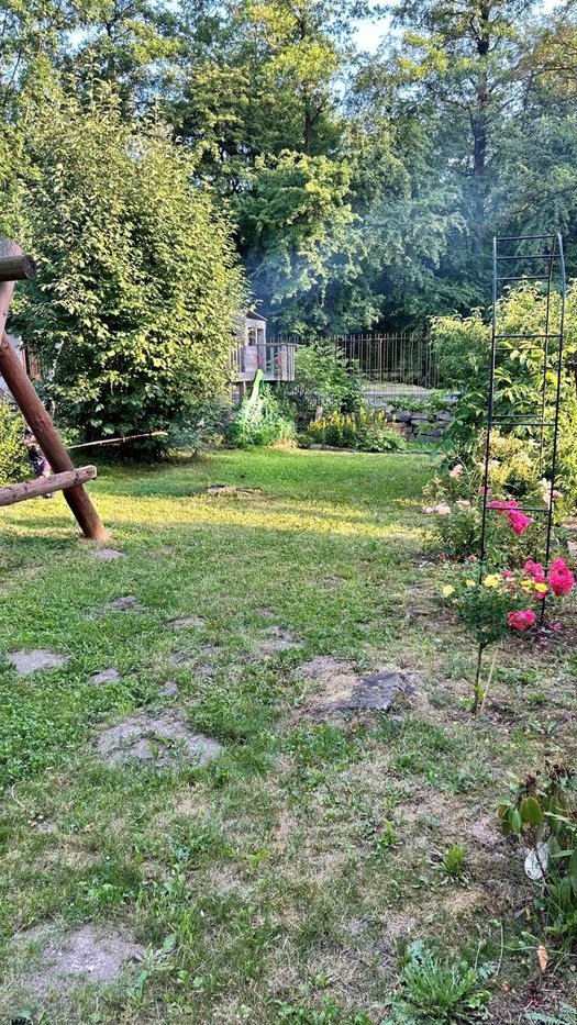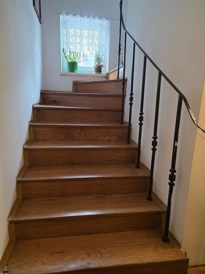 - 2 duże pokoje ( przechodnie ) pełniące funkcje pok. dziennego ( kominek) i dużej jadalni . łazienka , pom. gospodarcze z piecykiem gazowym na CO i ciepłą wodę oraz aneksem kuchennym oraz małą spiżarka pod schodami , przedpokój.