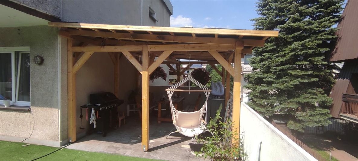 - salon z wyjściem na ok 30 metrowy taras( część zadaszona ) , 2 sypialnie , kuchnia ze spiżarką, łazienka ,