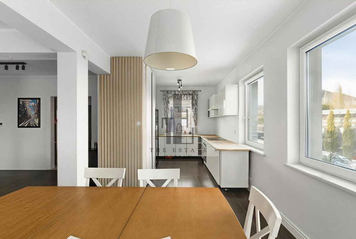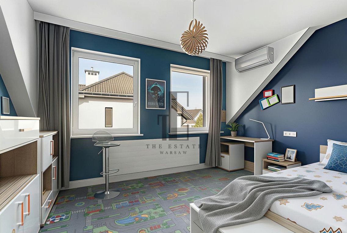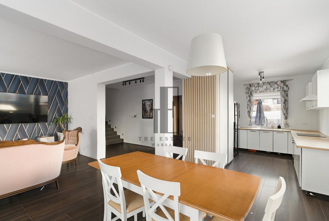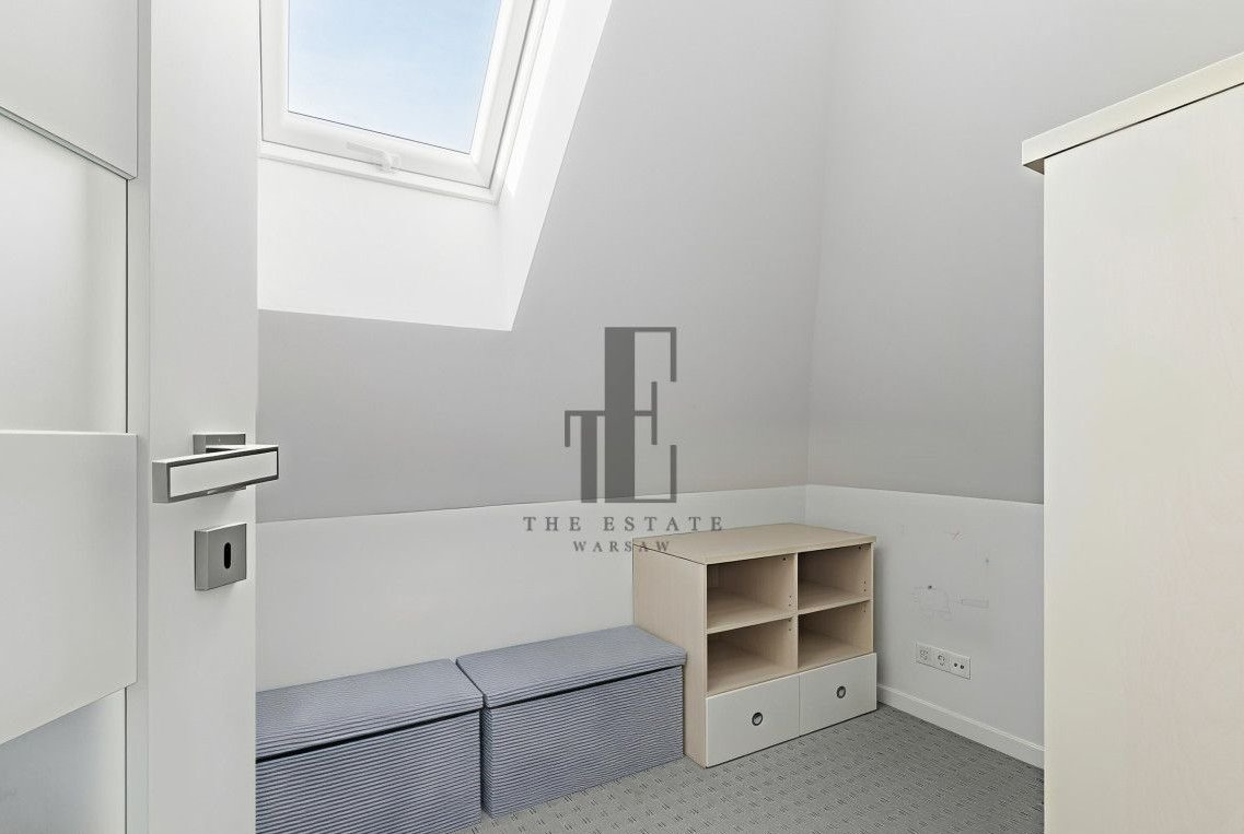 Połowa bliźniaka. Przemyślany układ pomieszczeń obejmuje przestronny salon z wyjściem do ogrodu, funkcjonalną kuchnię ze spiżarką, trzy ustawne sypialnie, gabinet oraz łazienki na każdej kondygnacji. Do dyspozycji są również pomieszczenia gospodarcze, a kwestie parkowania rozwiązuje dwustanowiskowy garaż. Duże okna zapewniają naturalne doświetlenie wnętrz, a prywatny ogród daje przestrzeń do relaksu, grillowania i stworzenia własnej strefy wypoczynku. Z dodatkowych udogodnień, dom ma zamontowaną klimatyzację, wyjście na duży 80m2 taras, nawodnienie ogródka oraz ogrzewanie podłogowe na całym parterze. Część domu pozostaje w stanie do wykończenia (łazienka na piętrze, poddasze i elewacja). Zabudowane meble i sprzęty pozostają.