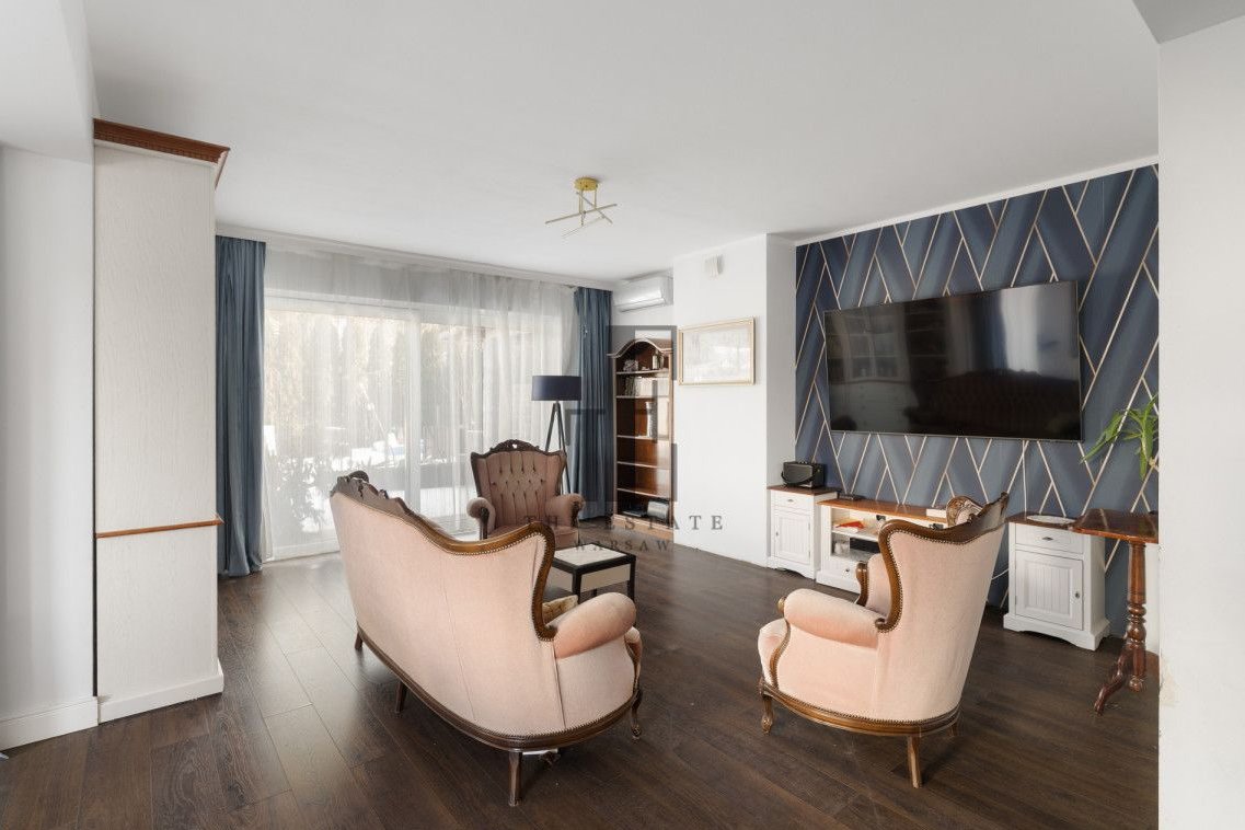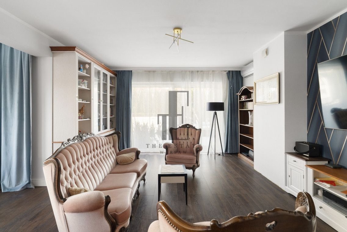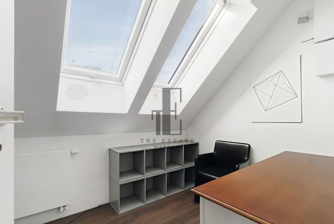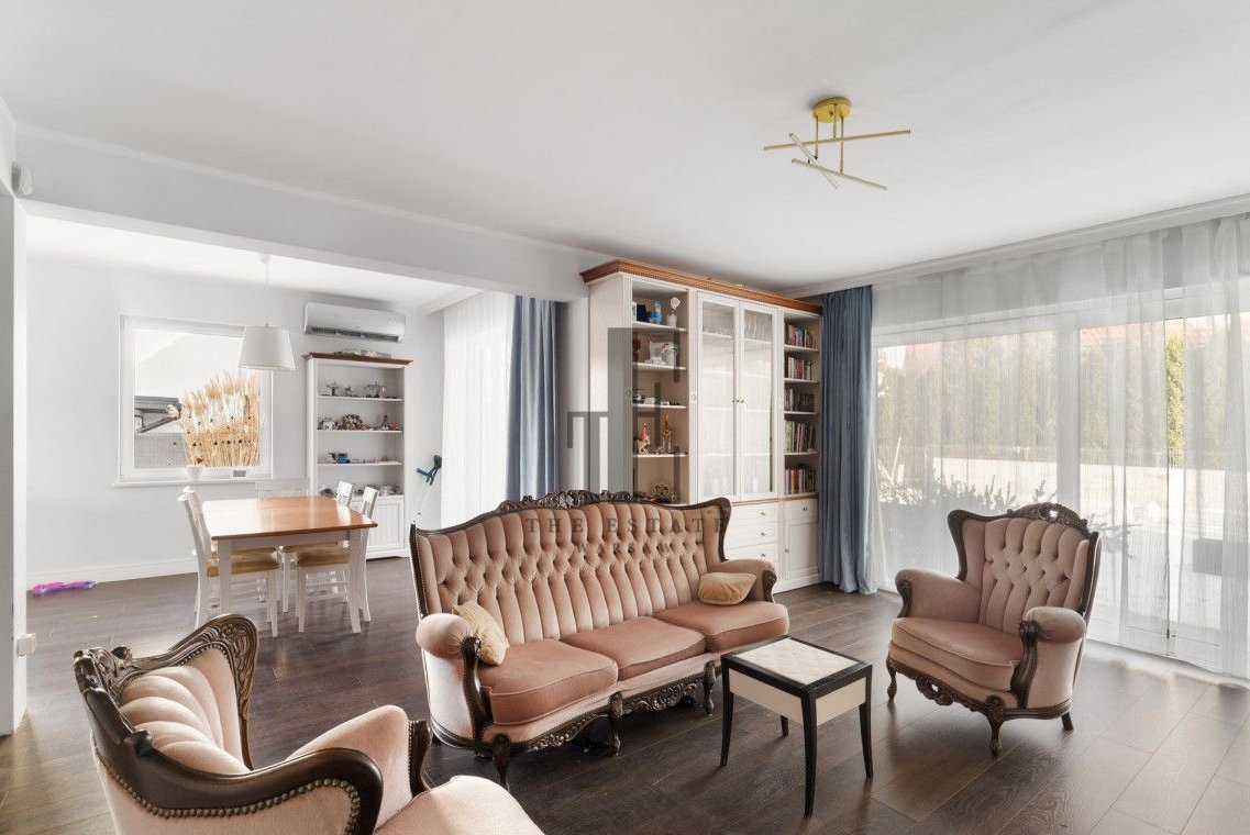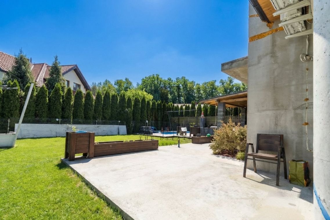 Połowa bliźniaka. Przemyślany układ pomieszczeń obejmuje przestronny salon z wyjściem do ogrodu, funkcjonalną kuchnię ze spiżarką, trzy ustawne sypialnie, gabinet oraz łazienki na każdej kondygnacji. Do dyspozycji są również pomieszczenia gospodarcze, a kwestie parkowania rozwiązuje dwustanowiskowy garaż. Duże okna zapewniają naturalne doświetlenie wnętrz, a prywatny ogród daje przestrzeń do relaksu, grillowania i stworzenia własnej strefy wypoczynku. Z dodatkowych udogodnień, dom ma zamontowaną klimatyzację, wyjście na duży 80m2 taras, nawodnienie ogródka oraz ogrzewanie podłogowe na całym parterze. Część domu pozostaje w stanie do wykończenia (łazienka na piętrze, poddasze i elewacja). Zabudowane meble i sprzęty pozostają.