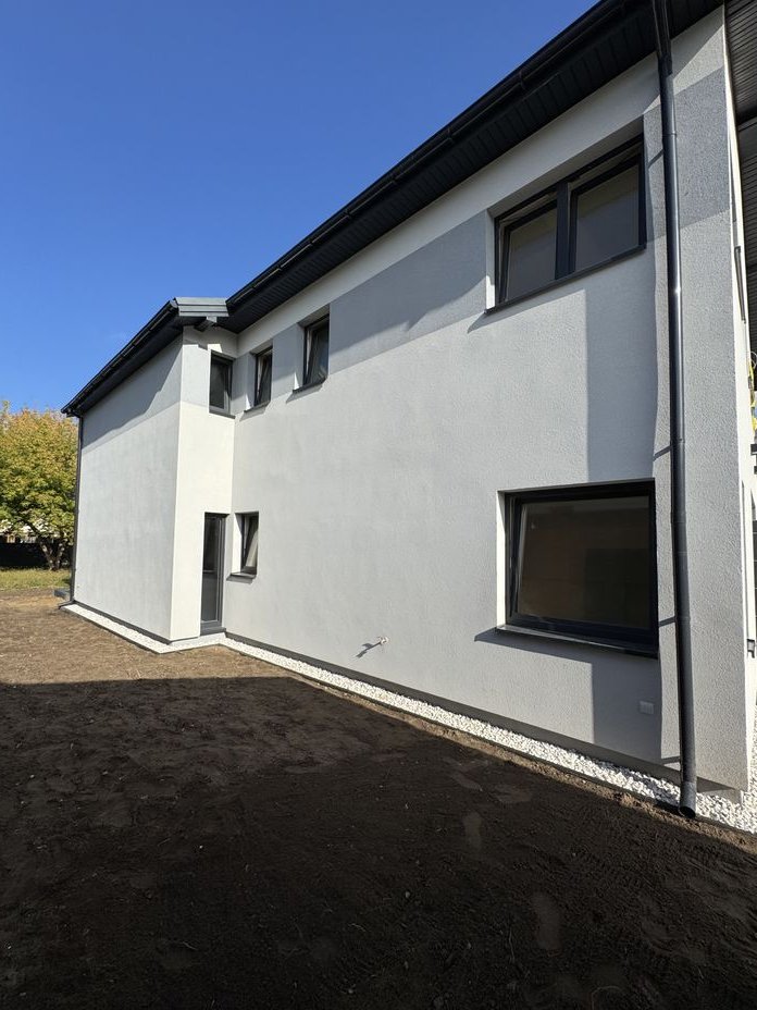 Powierzchnia połowy domu to 140m2 w tym 122m2 powierzchni użytkowej bez skosów + wiata garażowa 18m2 (można zabudować i powiększyć na garaż zamknięty z bramą i pomieszczeniem gospodarczym + strych z możliwością wykorzystania na przechowywanie.