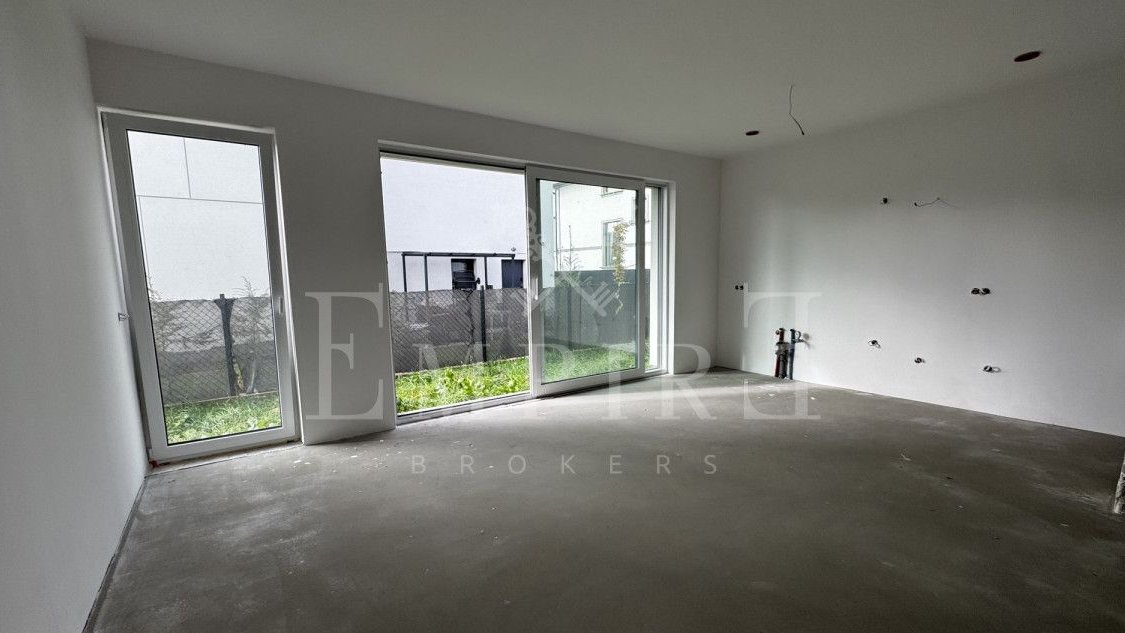 Przestronny, jasny salon z dużym przesuwnym oknem o szerokości 3,6 metra, które otwiera wnętrze na ogród i wypełnia przestrzeń naturalnym światłem. Idealne miejsce do wspólnego spędzania czasu i relaksu.