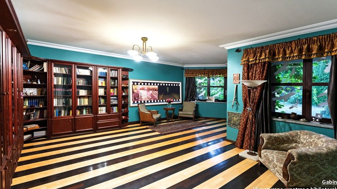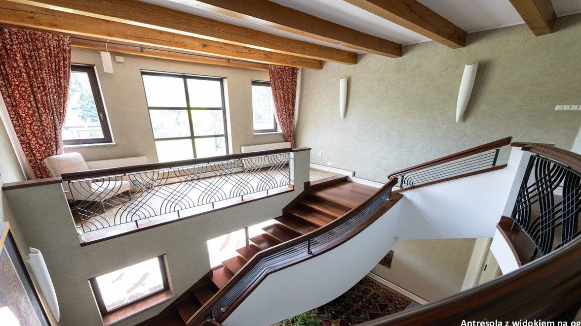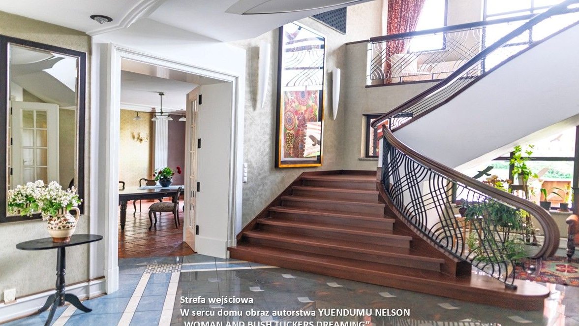 - Wnętrza z dbałością o detale - schody z egzotycznego drewna, stylowa zabudowa meblowa, obrazy, granitowe blaty