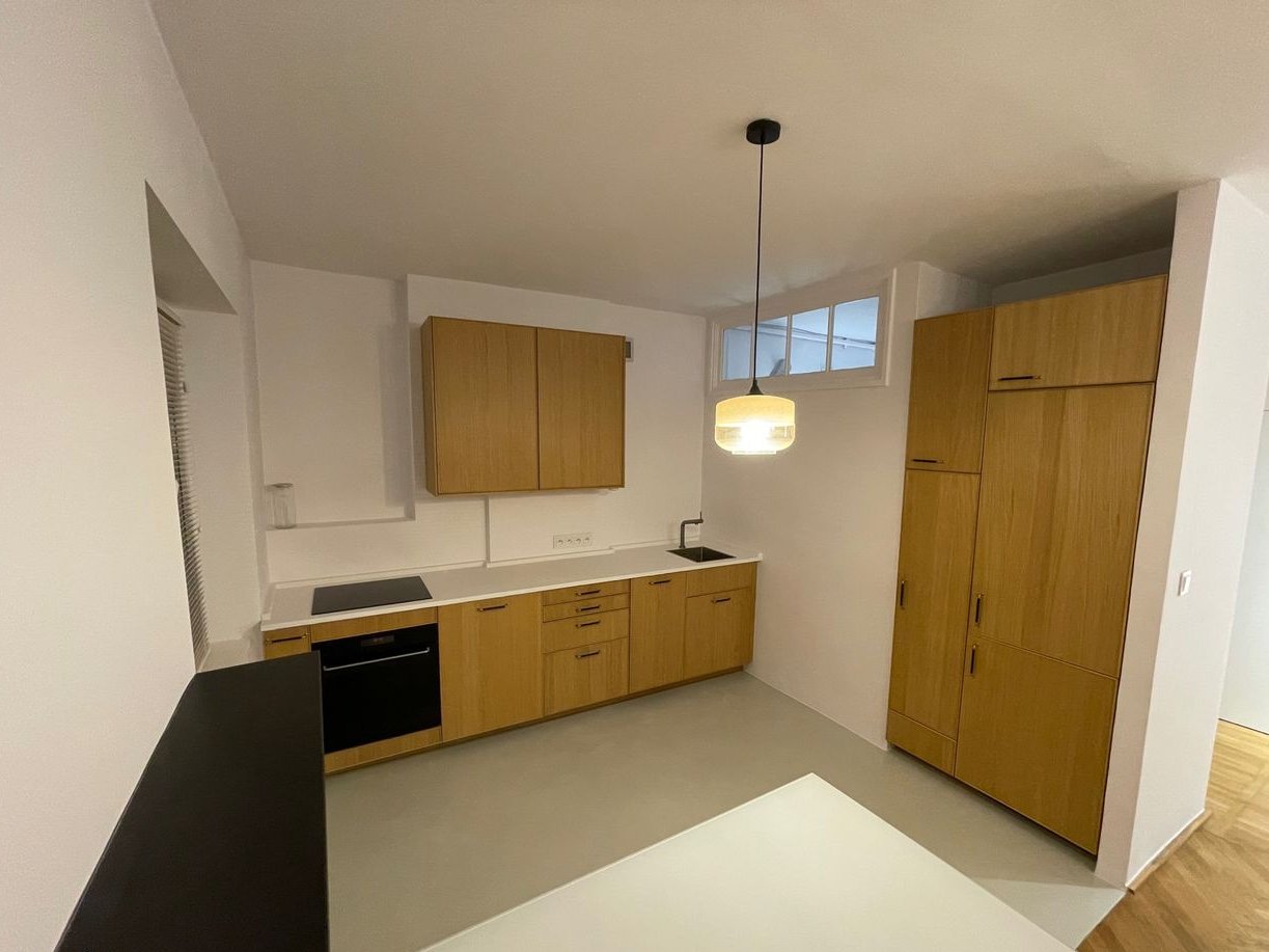 Nowoczesny aneks kuchenny otwarty na salon, z możliwością oddzielenia ścianką