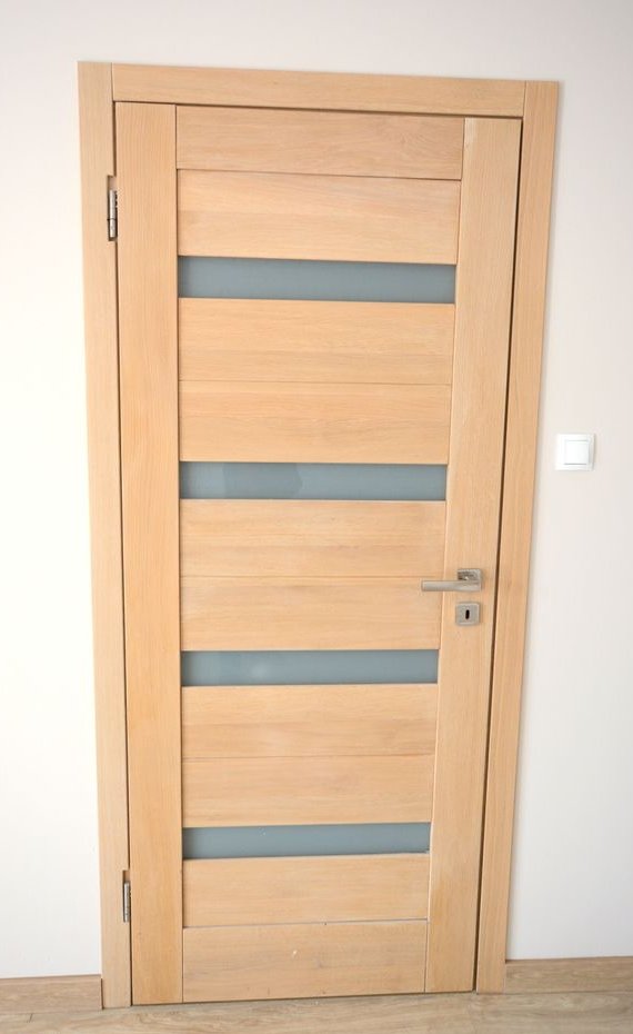 Drewniane drzwi (bielony dąb) , szafy oraz kuchnia robione przez stolarza na zamówienie, sprzęt kuchenny wysokiej klasy SIEMENS.